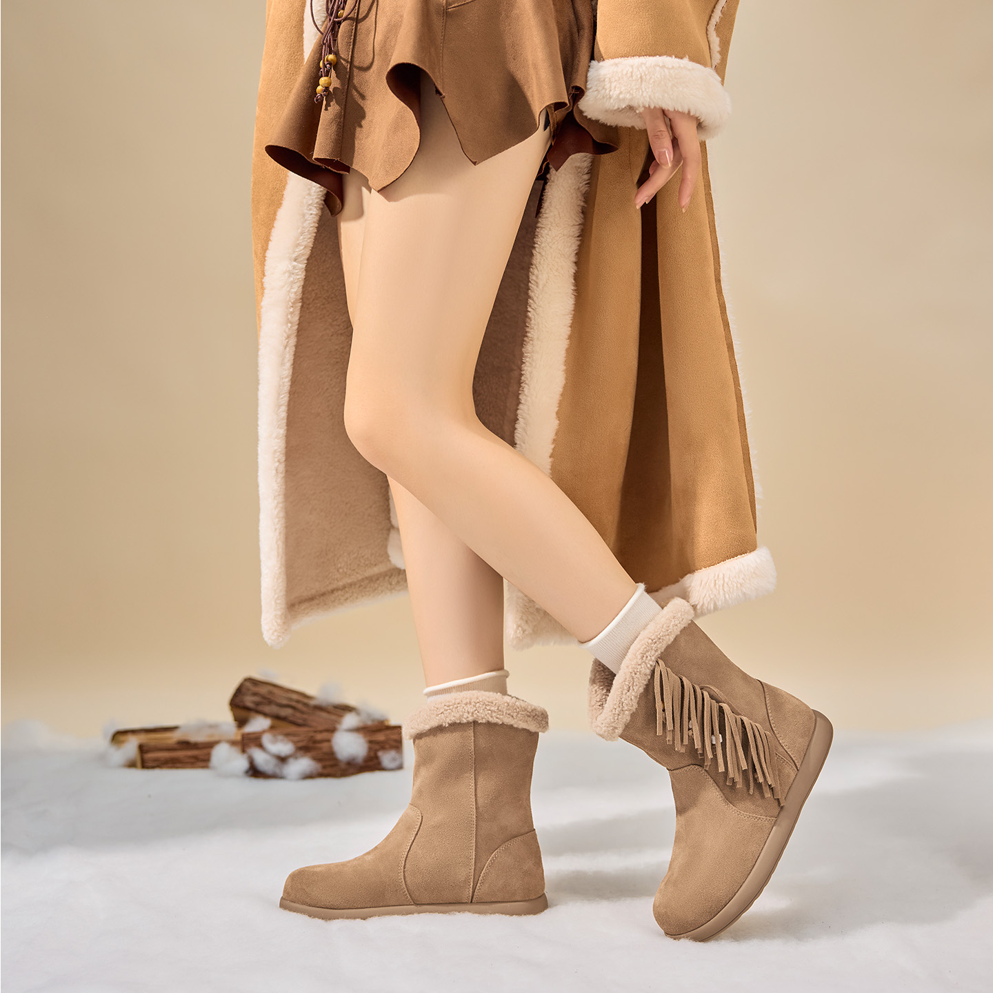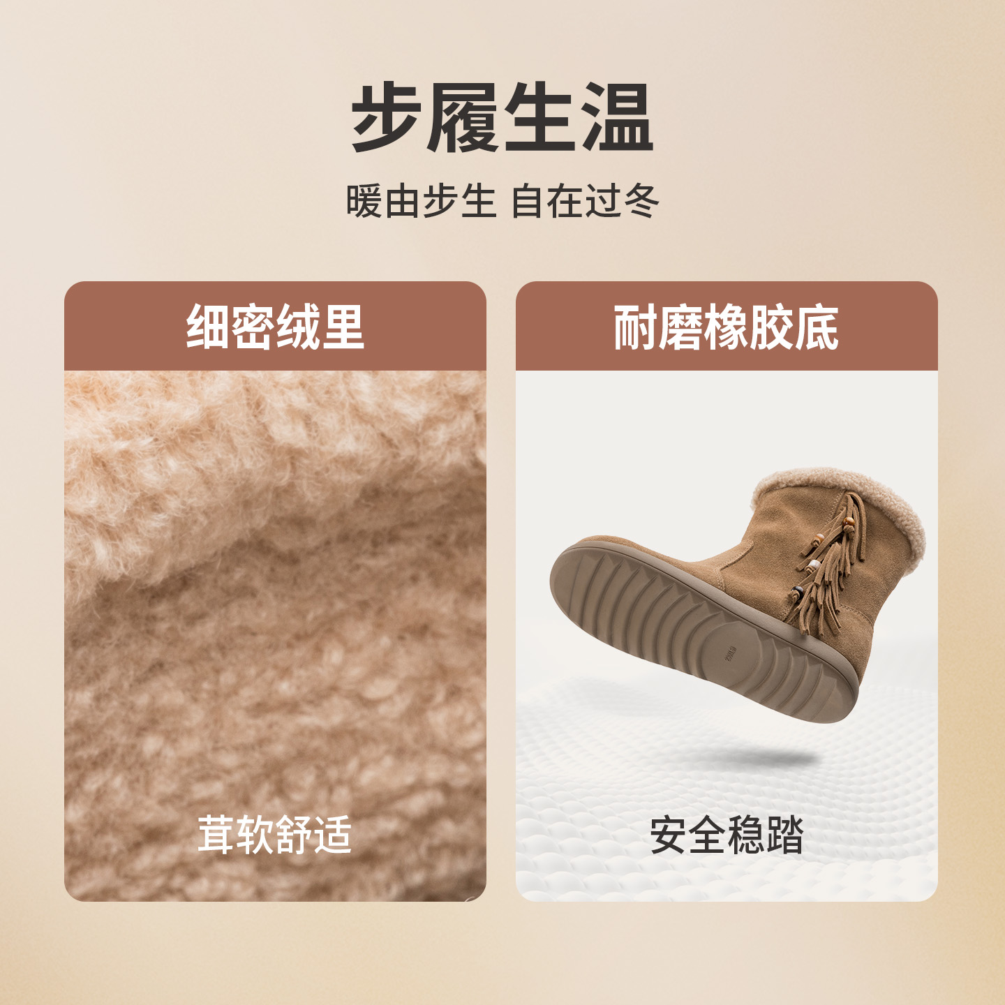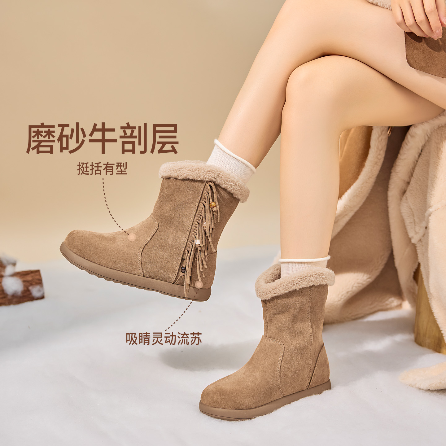 天猫奥康 女鞋2025冬季加绒雪地靴保暖短筒厚底户外毛毛靴子门店发货