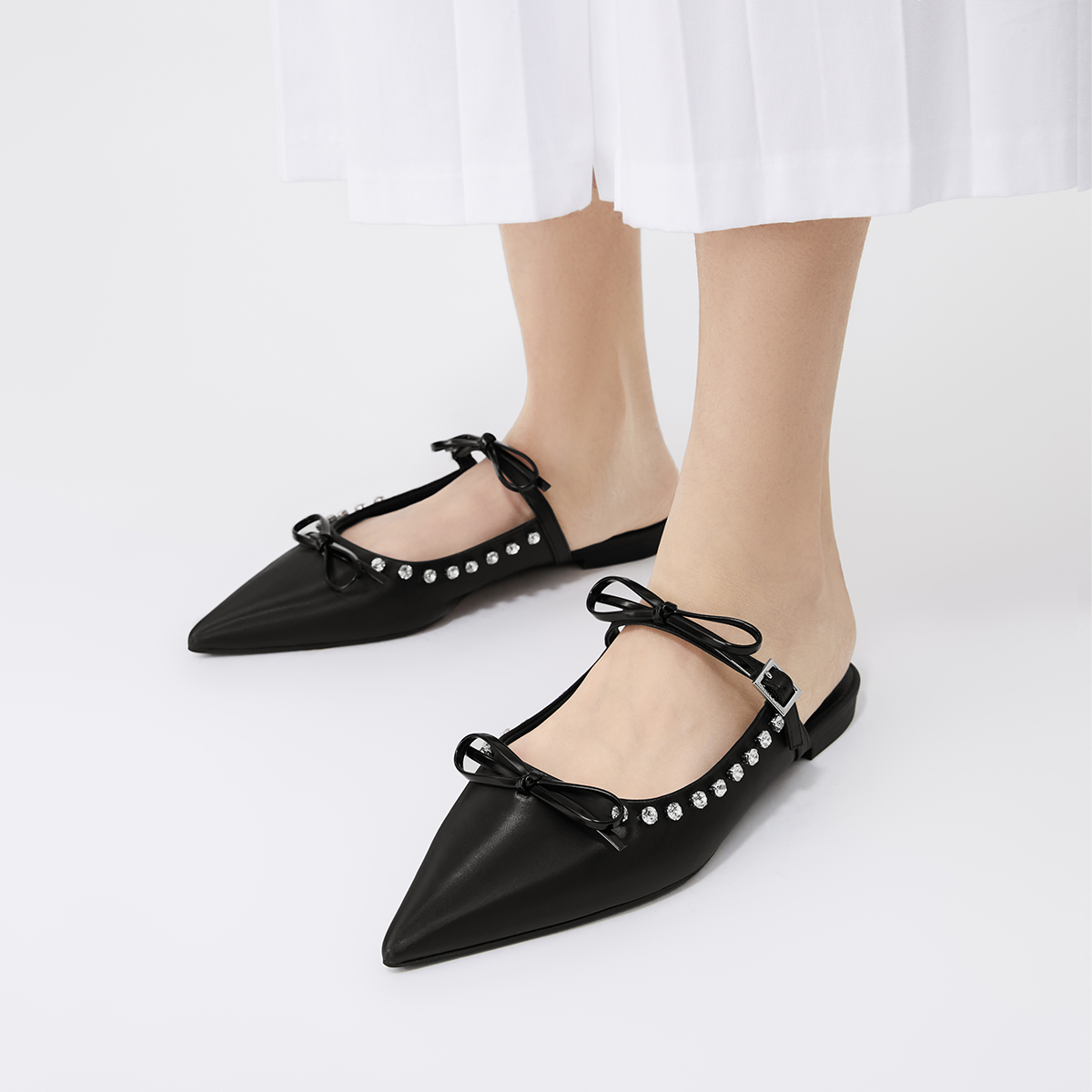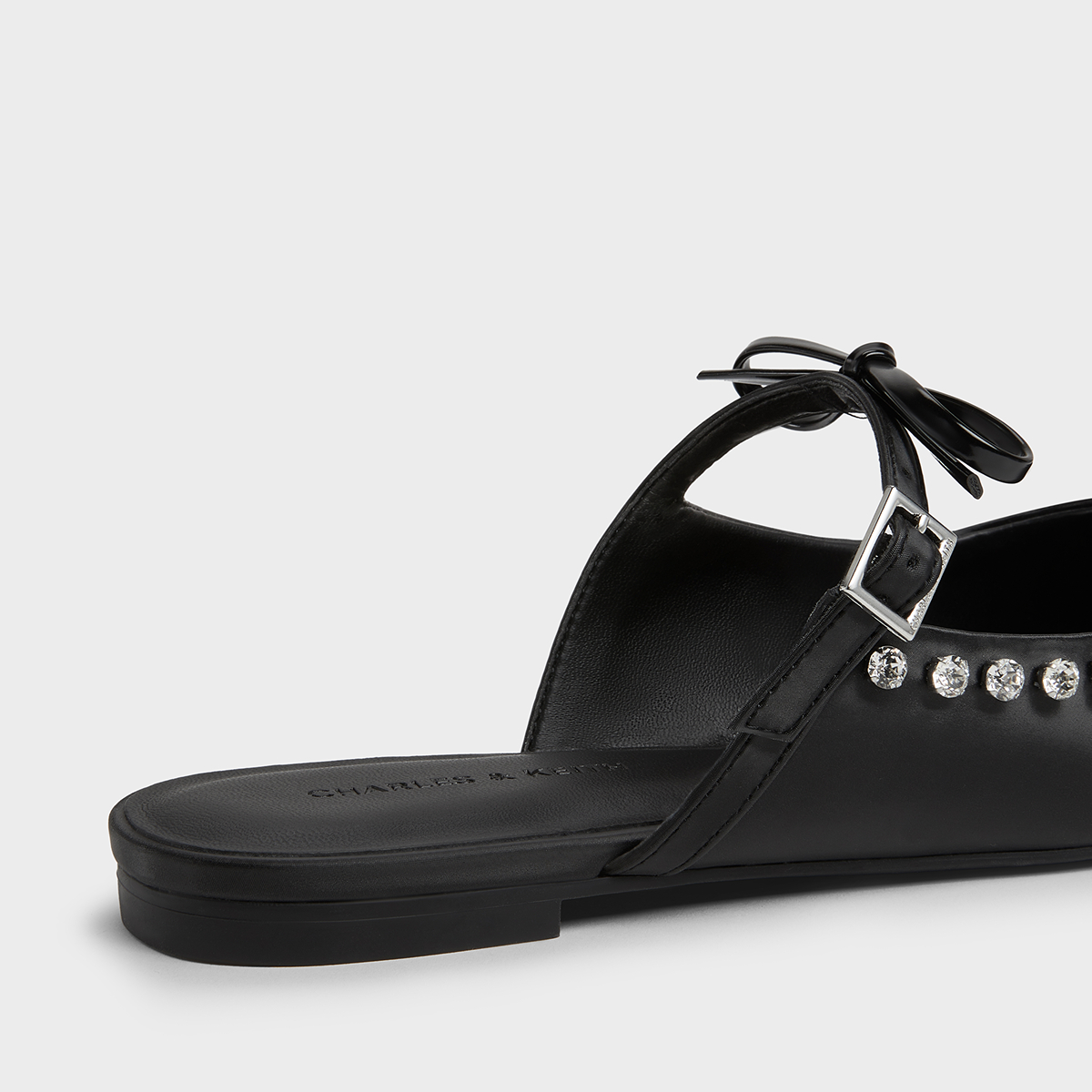 天猫CHARLES&KEITH秋冬女鞋CK1-70580265-1蝴蝶结尖头亮钻平底穆勒鞋