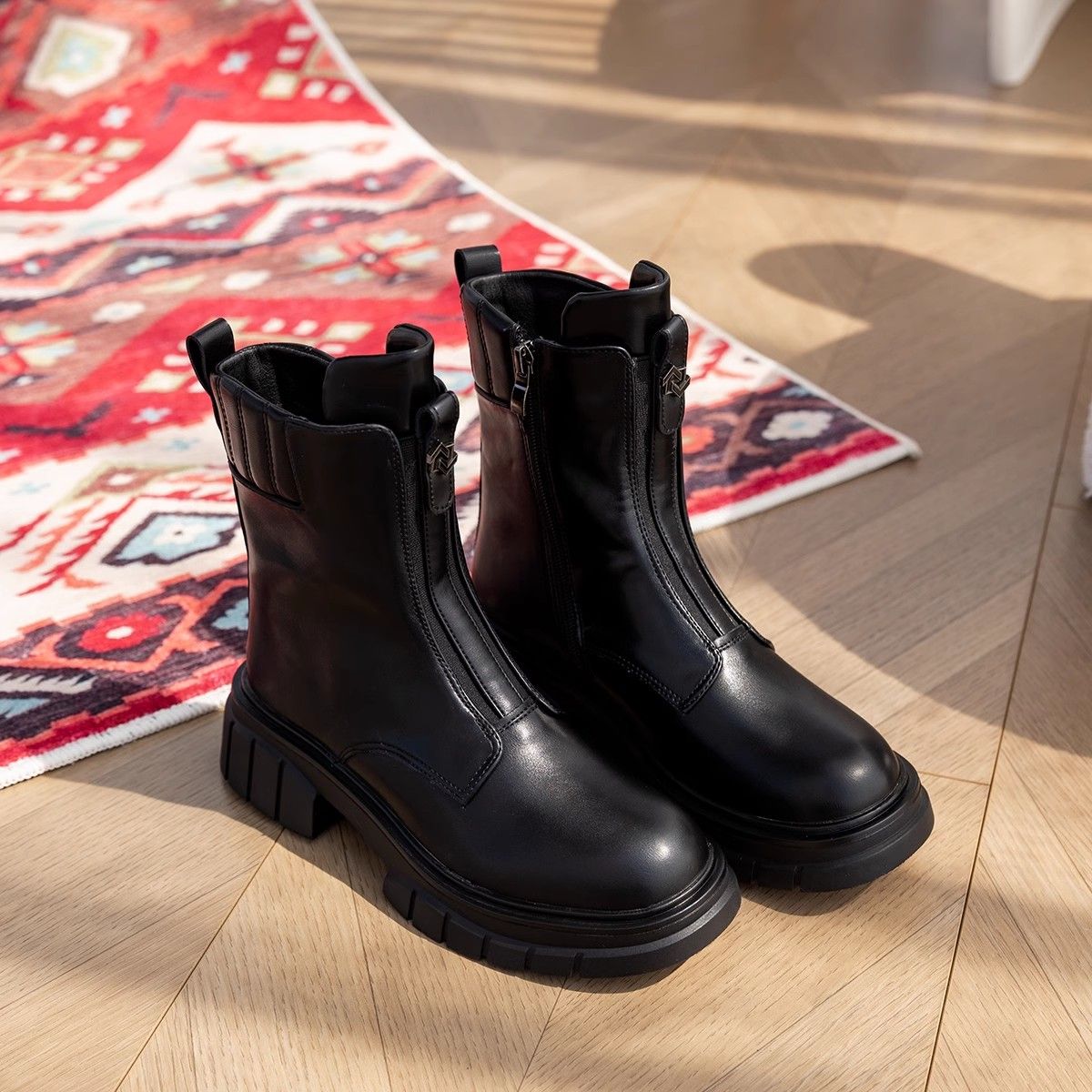 淘品牌真皮厚底马丁靴女英伦风短靴女2025秋冬款切尔西烟筒靴瘦瘦靴