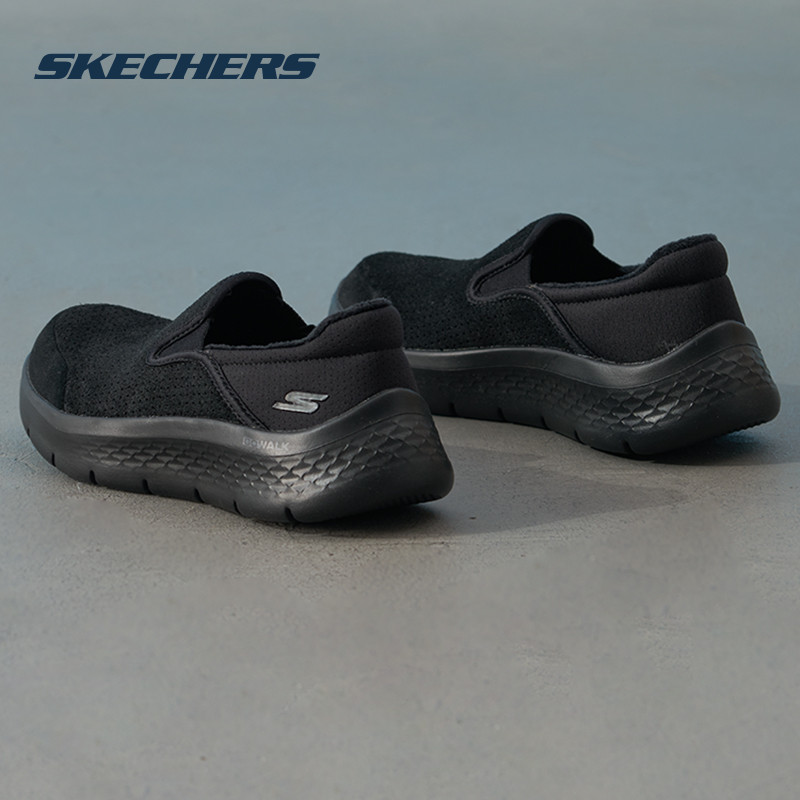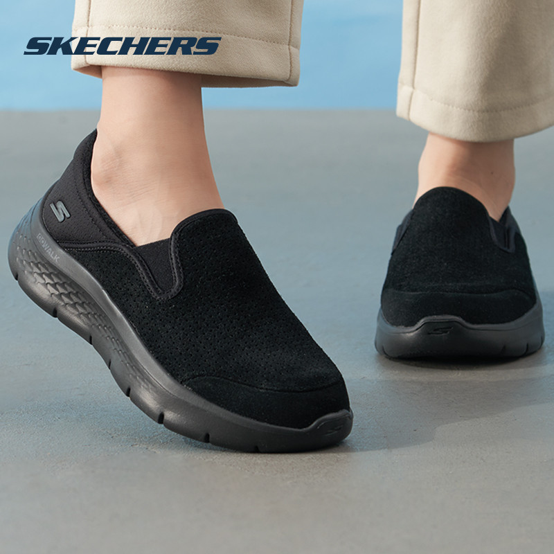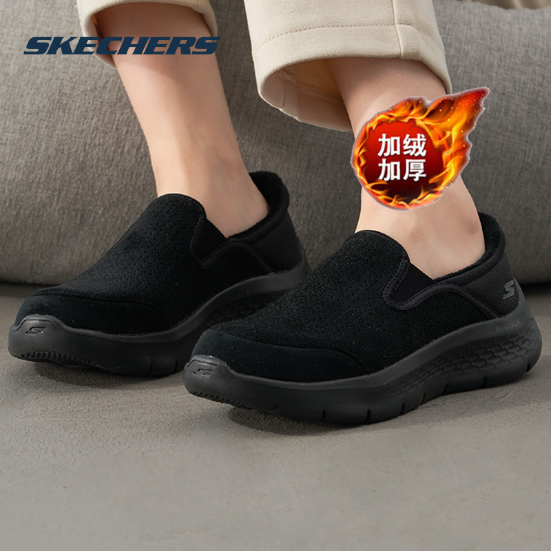 天猫斯凯奇加绒女鞋冬季新款棉鞋一脚蹬穿脱女士运动鞋女款黑色老人鞋