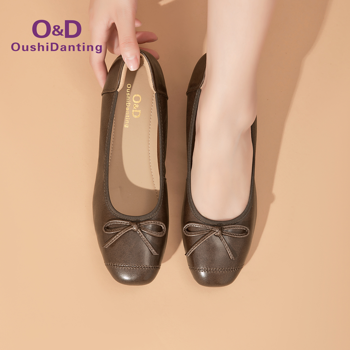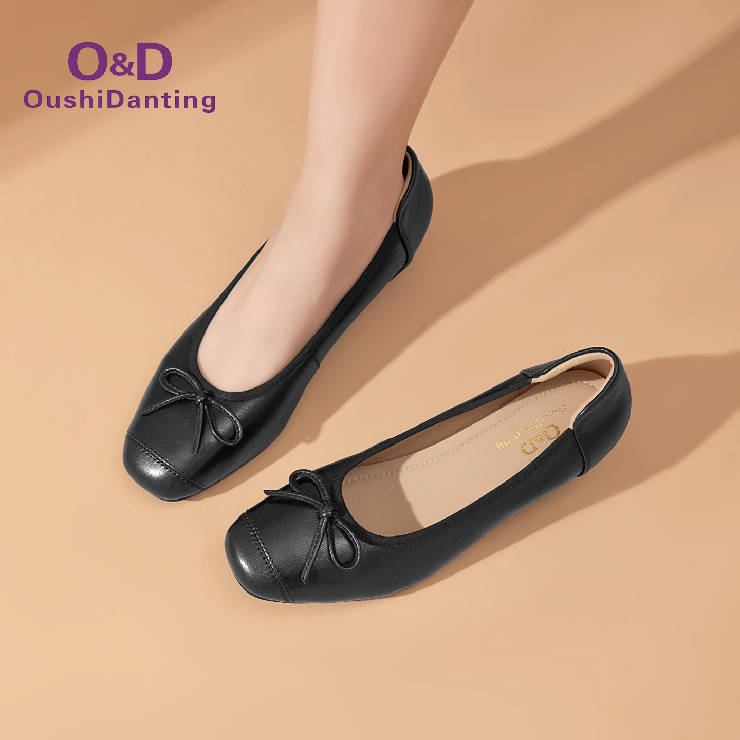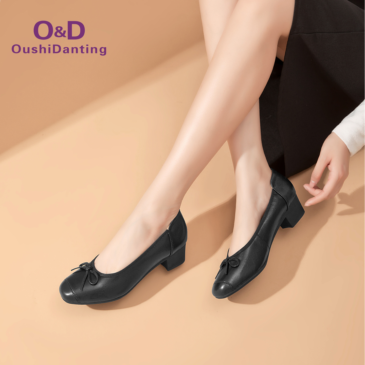 天猫【羊皮】OD欧诗丹婷真皮浅口通勤鞋女2025秋季新款粗跟蝴蝶结女鞋