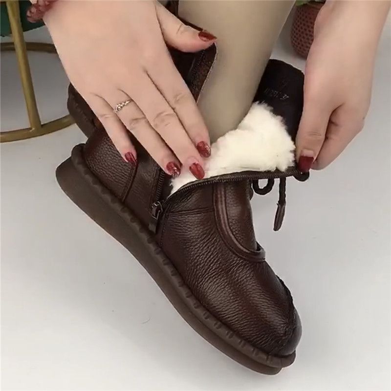淘宝断码品牌真皮短靴女冬季加绒保暖妈妈棉靴平底防滑中老年雪地靴女