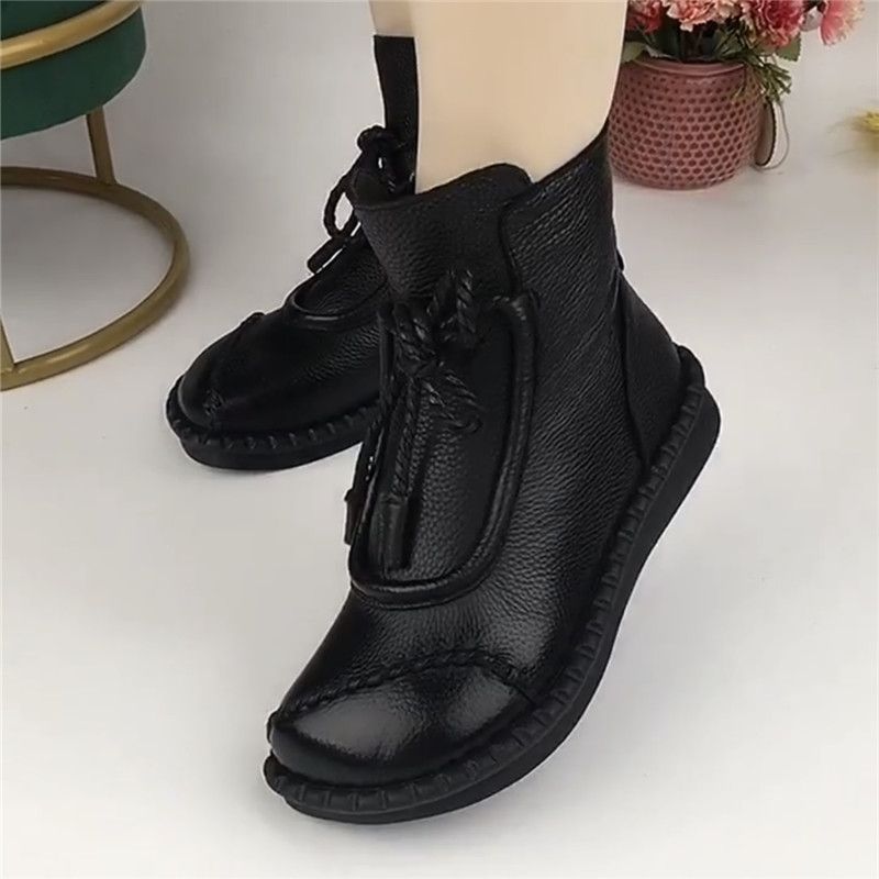 这款断码品牌真皮短靴是专为冬季女性设计的中老年雪地靴。采用优质真皮材料,加绒保暖,保暖性能出色。专为妈妈级人物打造,舒适平底设计,走起路来更加稳健。防滑底部设计,确保在雪地或湿滑地面行走安全。这款短靴不仅保暖舒适,而且时尚优雅,是冬季中老年人的理想选择。加之内里采用柔软舒适的棉质材料,贴合脚部肌肤,给予妈妈温暖呵护。是一款实用与时尚并存的中老年女性冬季鞋履。