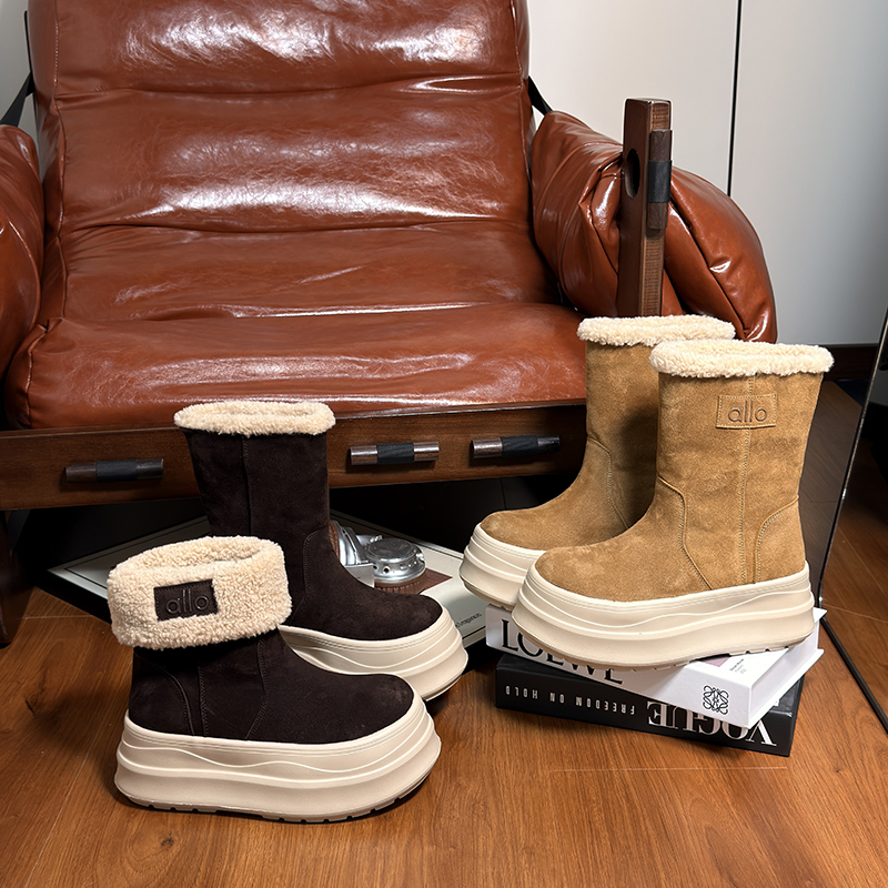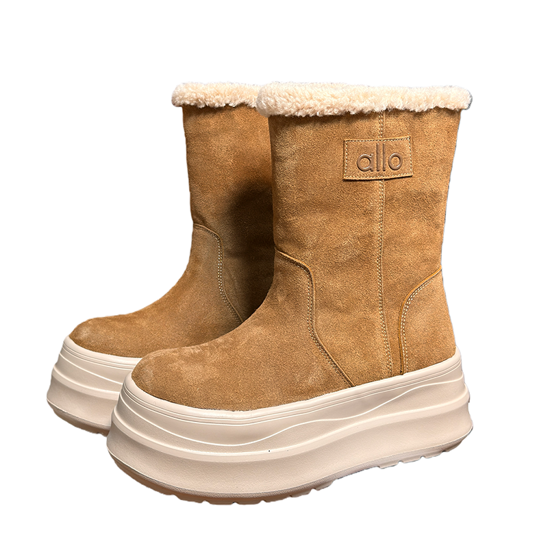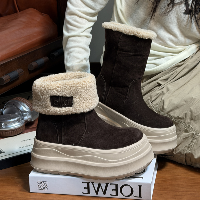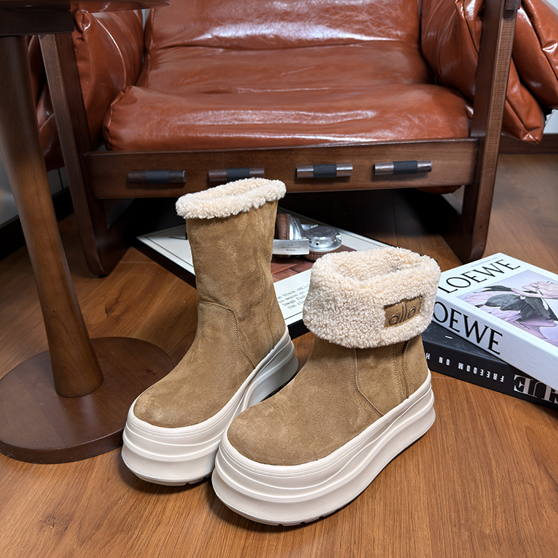 淘宝磨砂真皮松糕厚底马丁靴女加绒棉靴雪地靴百搭翻领两穿中筒烟筒靴