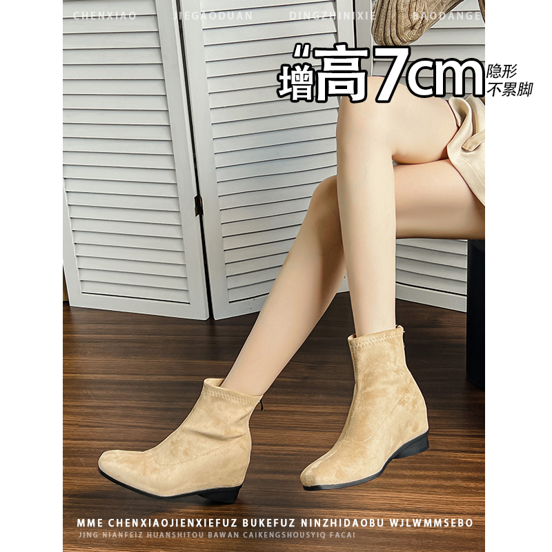 淘宝不累脚!小个子内增高7CM瘦瘦靴女2025秋冬新款法式后拉链短靴子