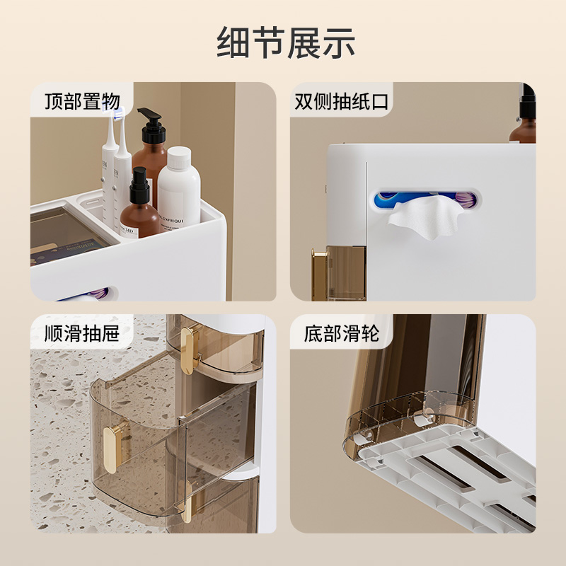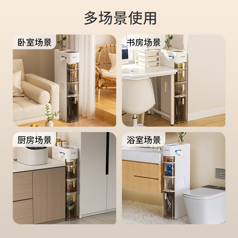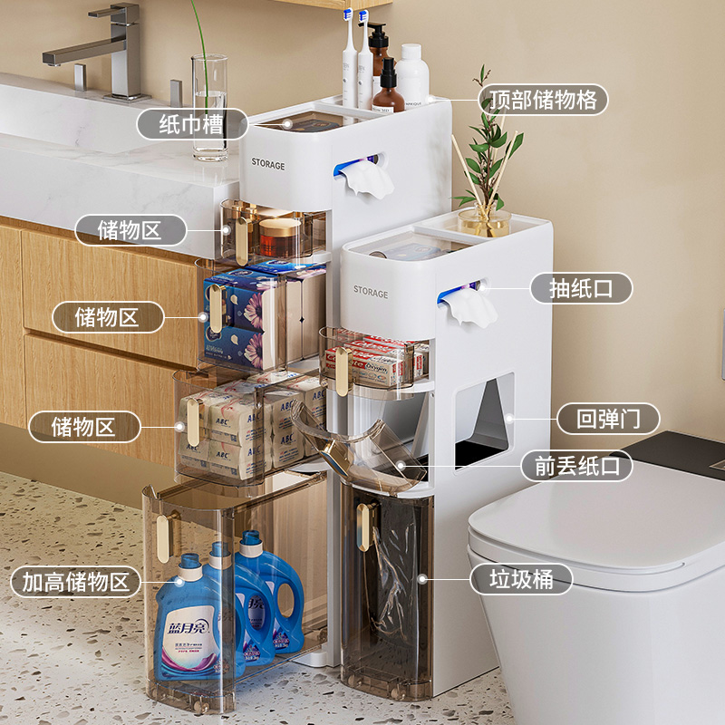 天猫兴起卫生间置物架马桶旁夹缝收纳柜厕所窄缝储物柜浴室缝隙垃圾桶