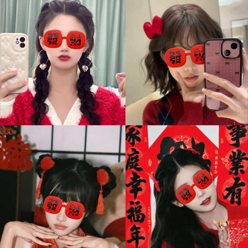 淘宝新年装饰品发财红色眼镜太阳镜翻盖拍照氛围感道工具2026年新款