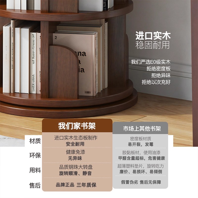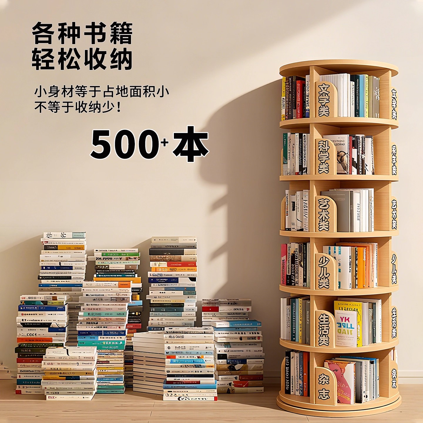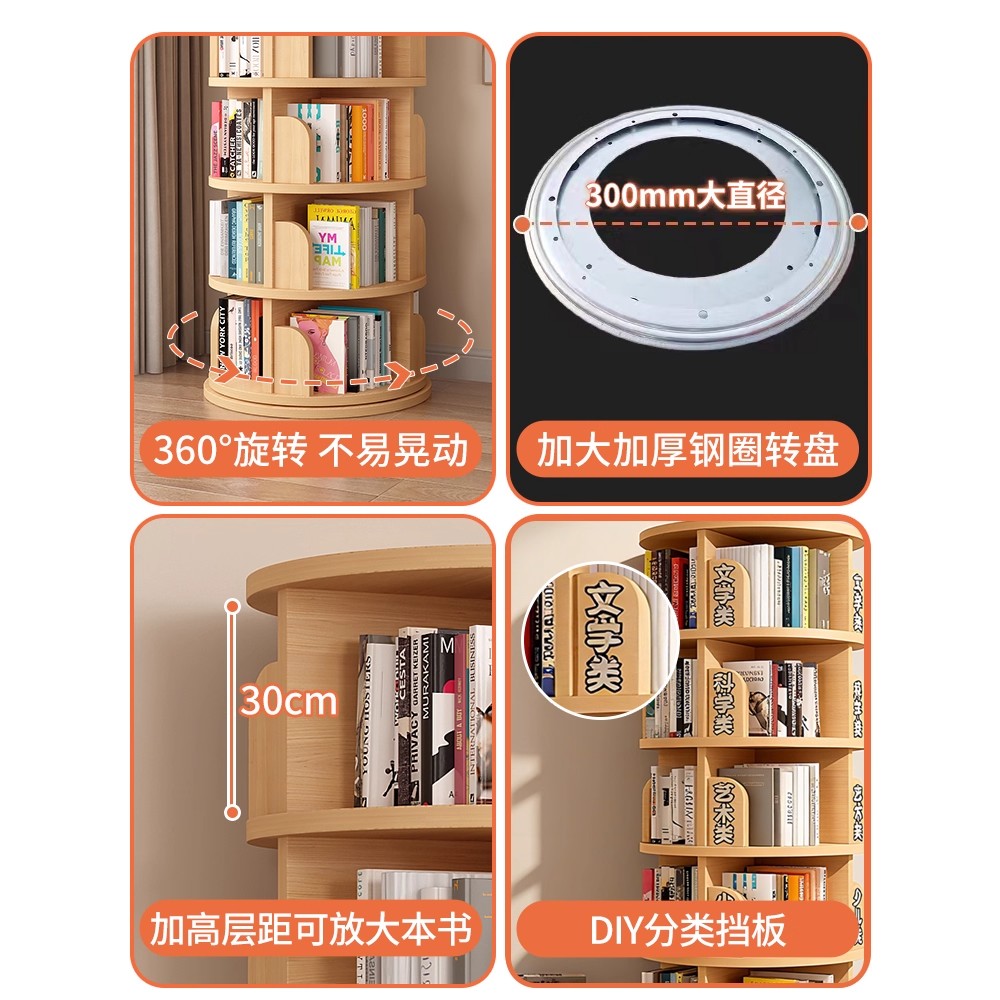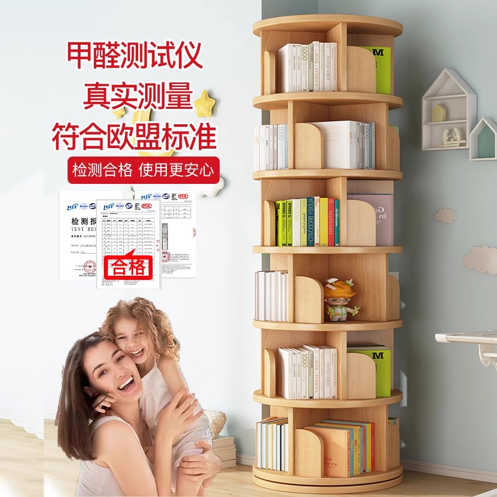 天猫实木旋转书架360度书柜客厅孩童书报架一体靠墙收纳架落地置物架