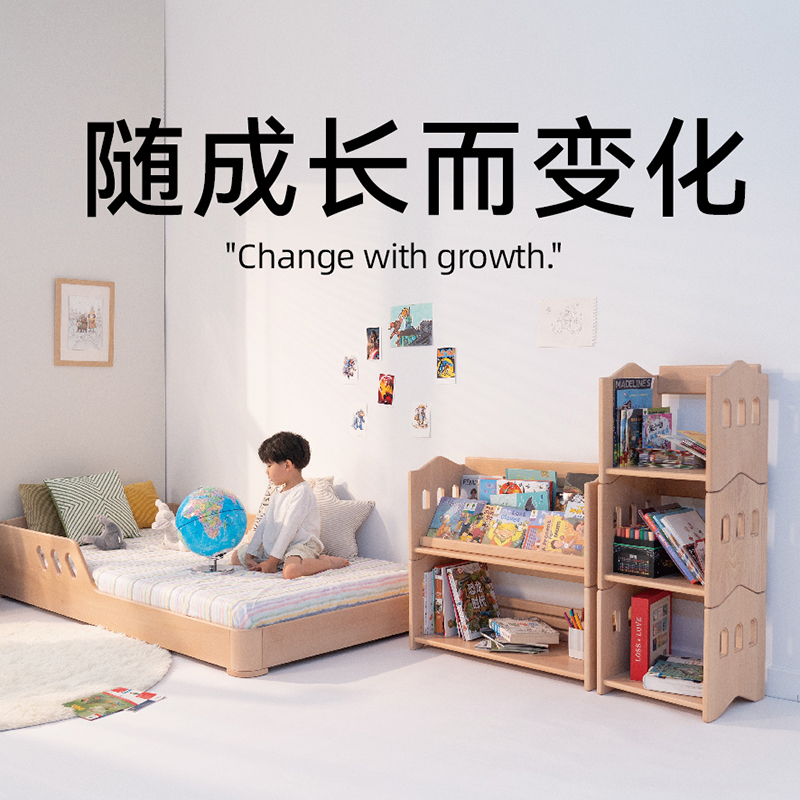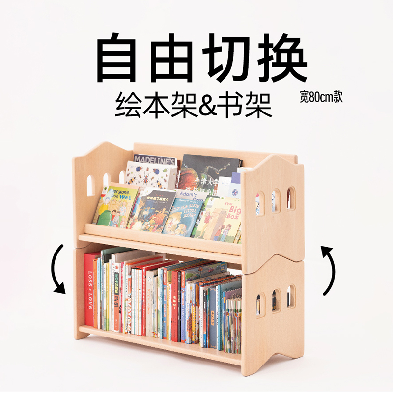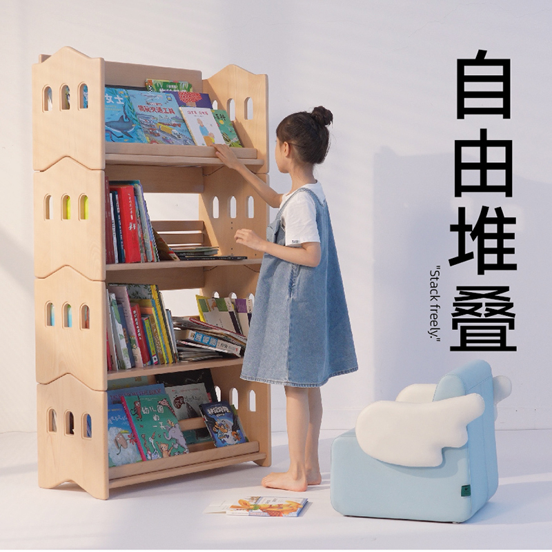 天猫onfo全实木儿童书架阅读绘本架可堆叠落地置物架组合宝宝玩具收纳