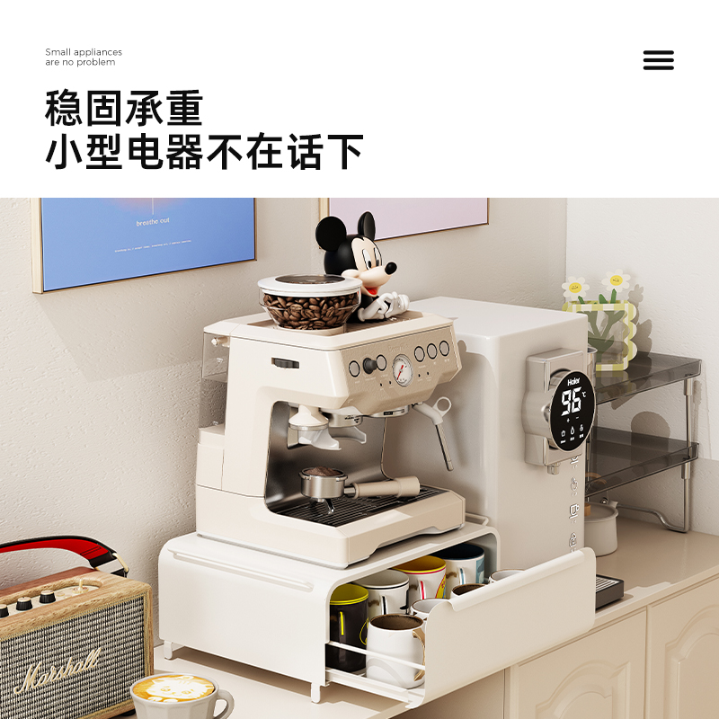 天猫桌面收纳盒杯子置物架咖啡机防尘水杯架台面抽屉式茶叶茶具收纳柜