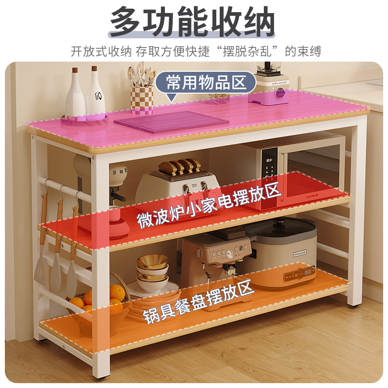 淘宝厨房置物架落地多层工作台储物窄边柜微波炉收纳架多功能切菜桌子