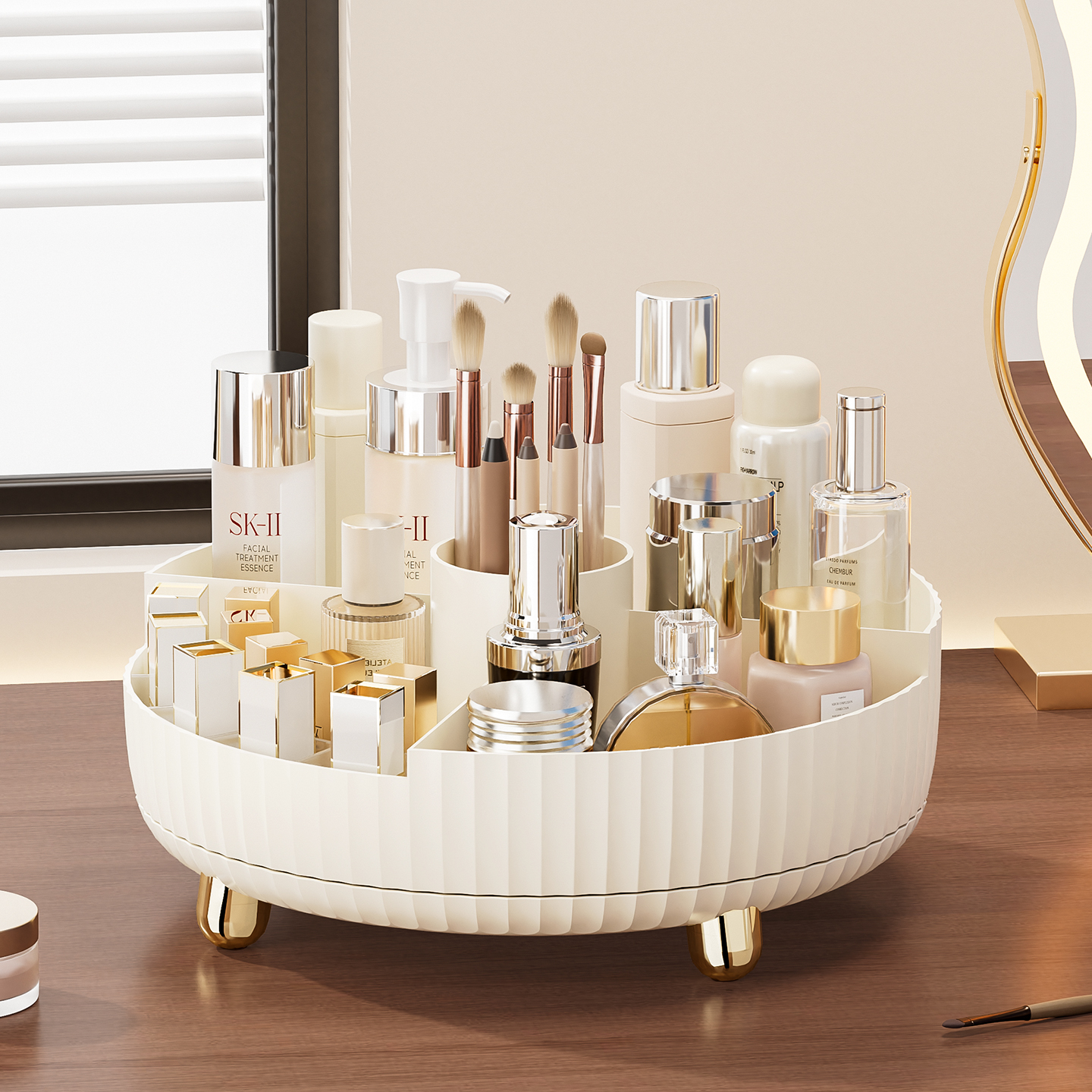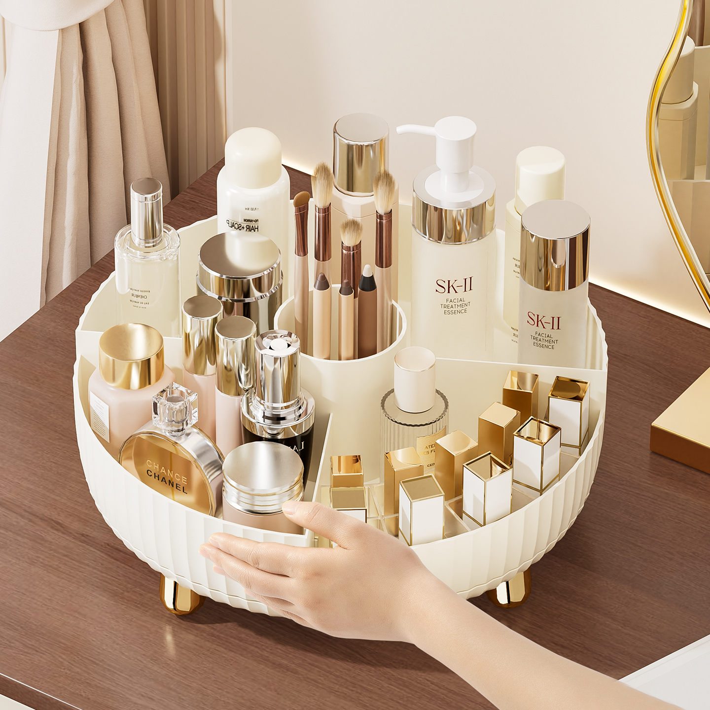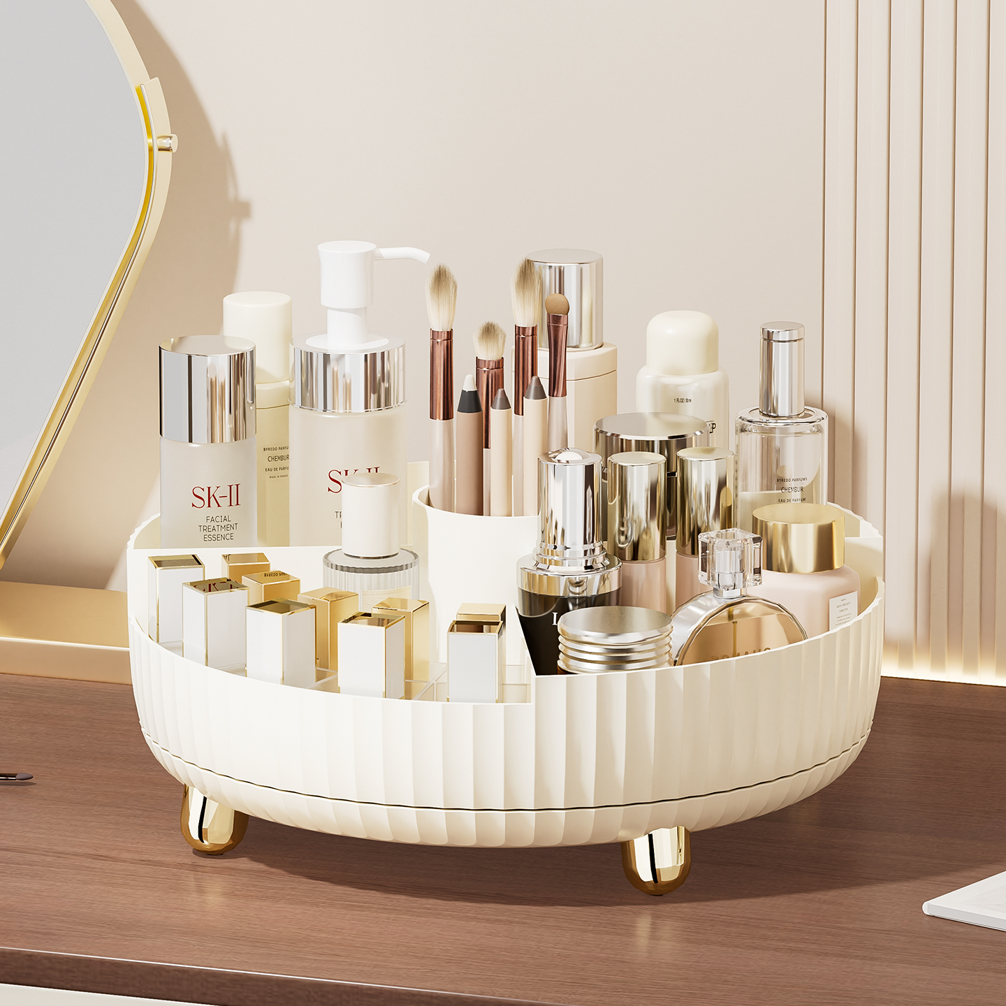天猫旋转化妆品收纳盒桌面高级感口红整理盒梳妆台护肤品化妆刷置物架
