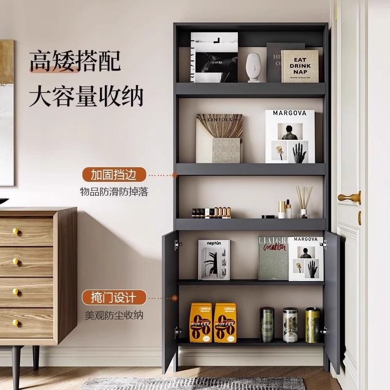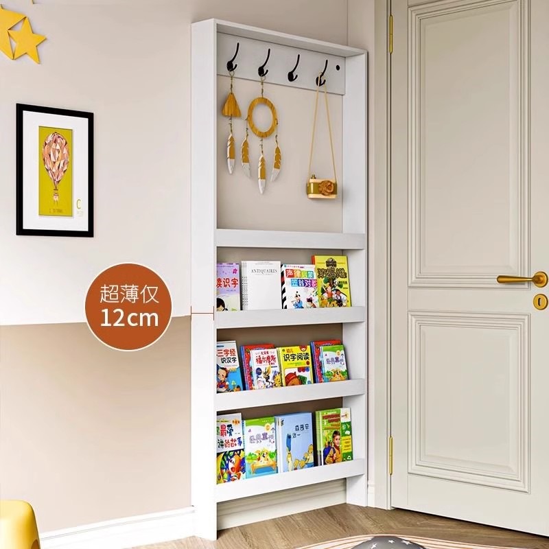 淘宝定制实木门后置物架带门超薄卧室落地靠墙绘本架免打孔多层收纳架