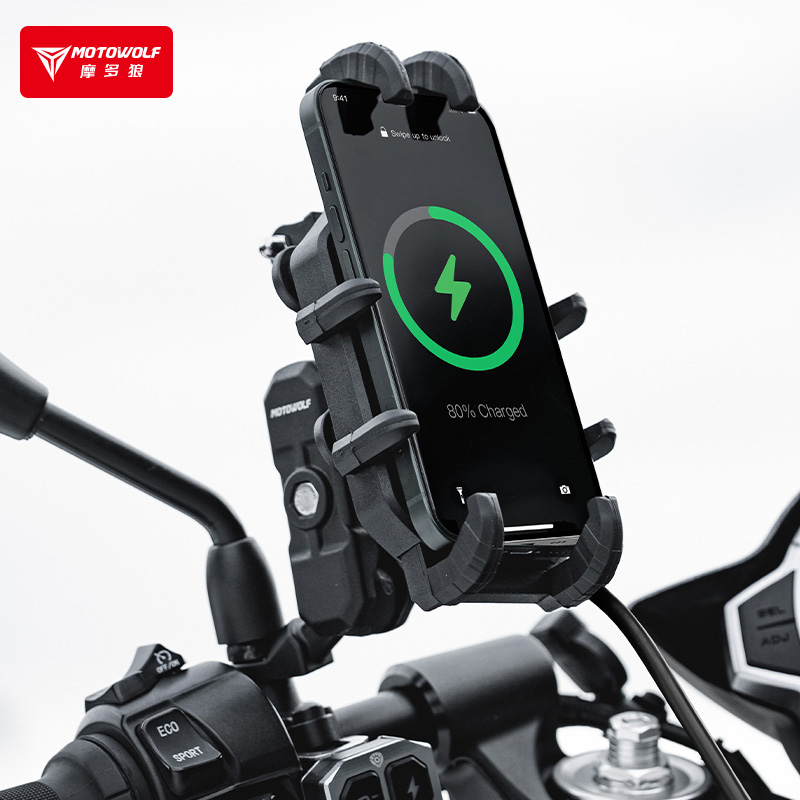 天猫摩托车手机支架无线充电铝合金减震防抖摩旅导航架子骑士骑行装备