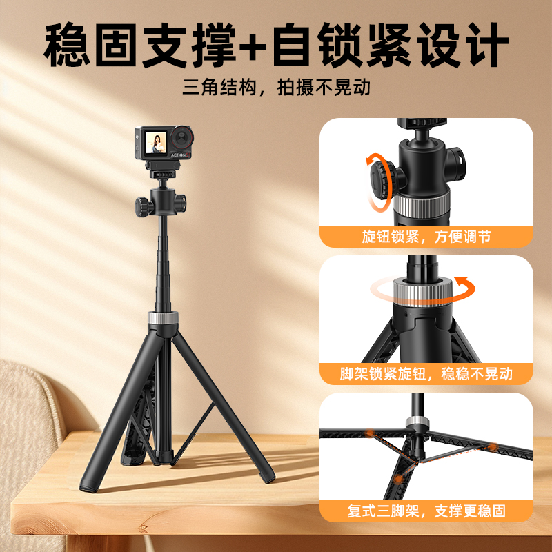 天叠品2025新款自拍杆三脚架防抖拍照神器360度旋转手持手机直播支架通用型蓝牙vlog拍摄便携迷你旅游出游专用