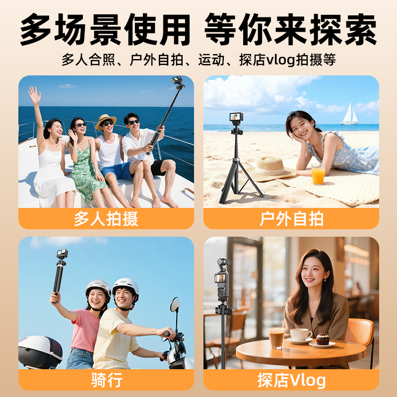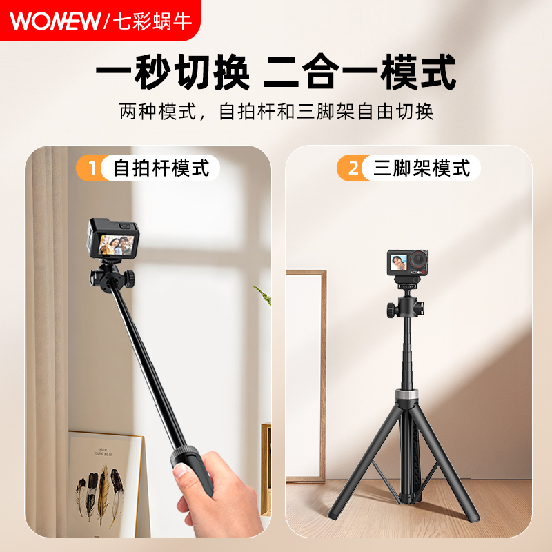 天猫wonew七彩蜗牛适配大疆pocket3落地三脚架手持拍摄可延长云台自拍杆迷你便携运动相机手机支架桌面伸缩三脚架