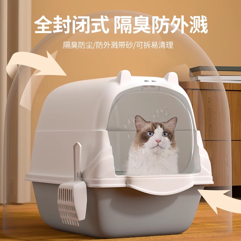 天猫砂盆超大号全封闭式防外溅防臭猫沙盆猫砂盘幼猫顶出式猫厕所