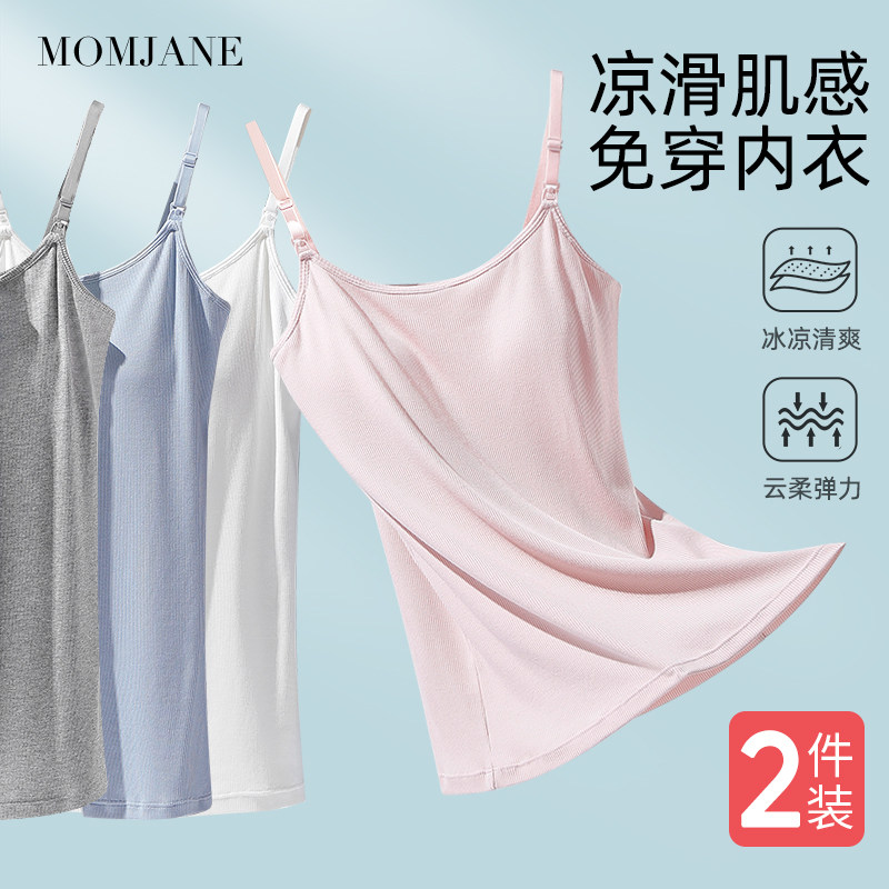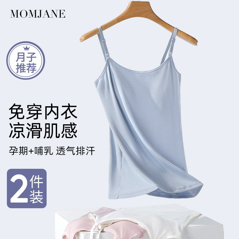 淘宝哺乳背心吊带孕妇春夏季薄款带胸垫月子服喂奶免穿文胸打底衫