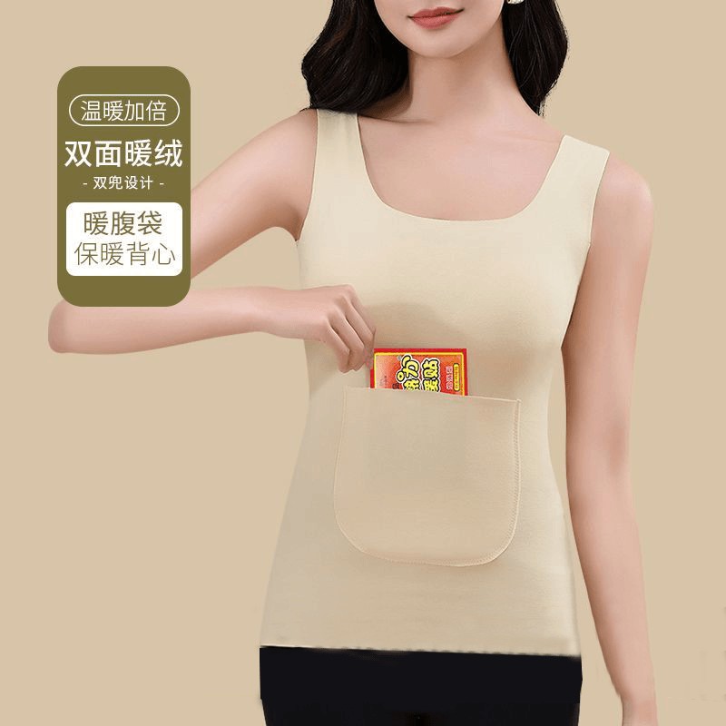 天都市丽人保暖背心女蚕丝德绒发热内衣加绒加厚无痕打底衫冬季上衣