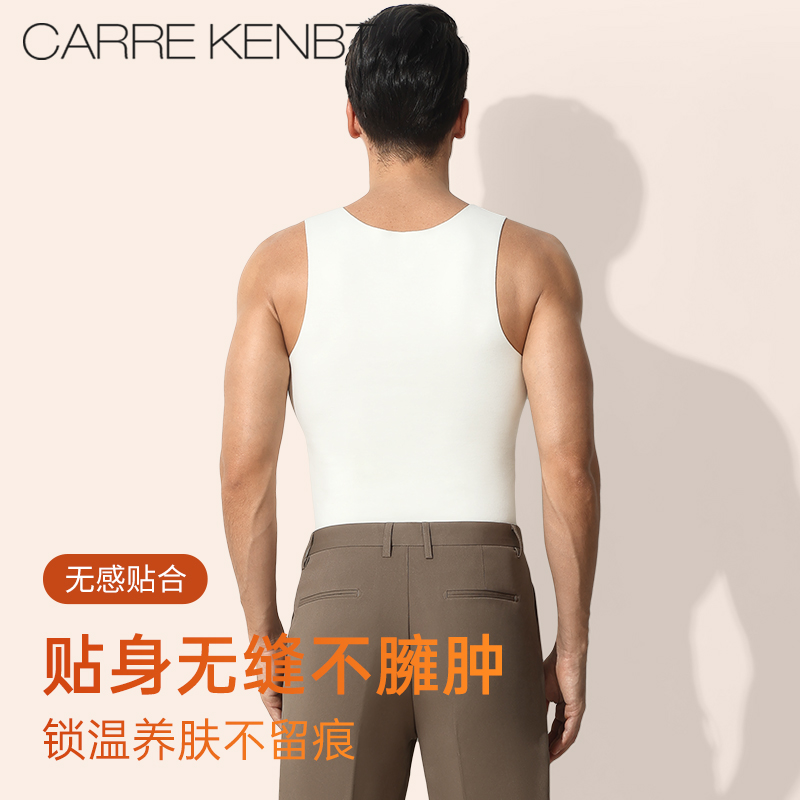 羊绒蚕丝保暖背心男士德绒内搭上衣打底衫加绒加厚无痕内衣秋冬季