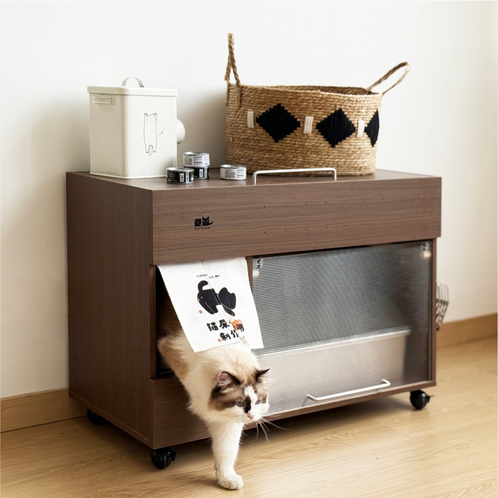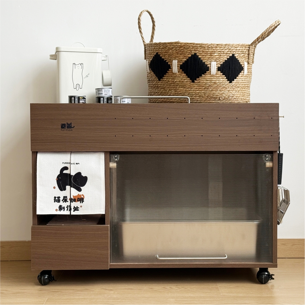 天猫PurrKnave朋内黑胡桃色猫窝猫厕所一体猫柜大号封闭式家用猫砂盆