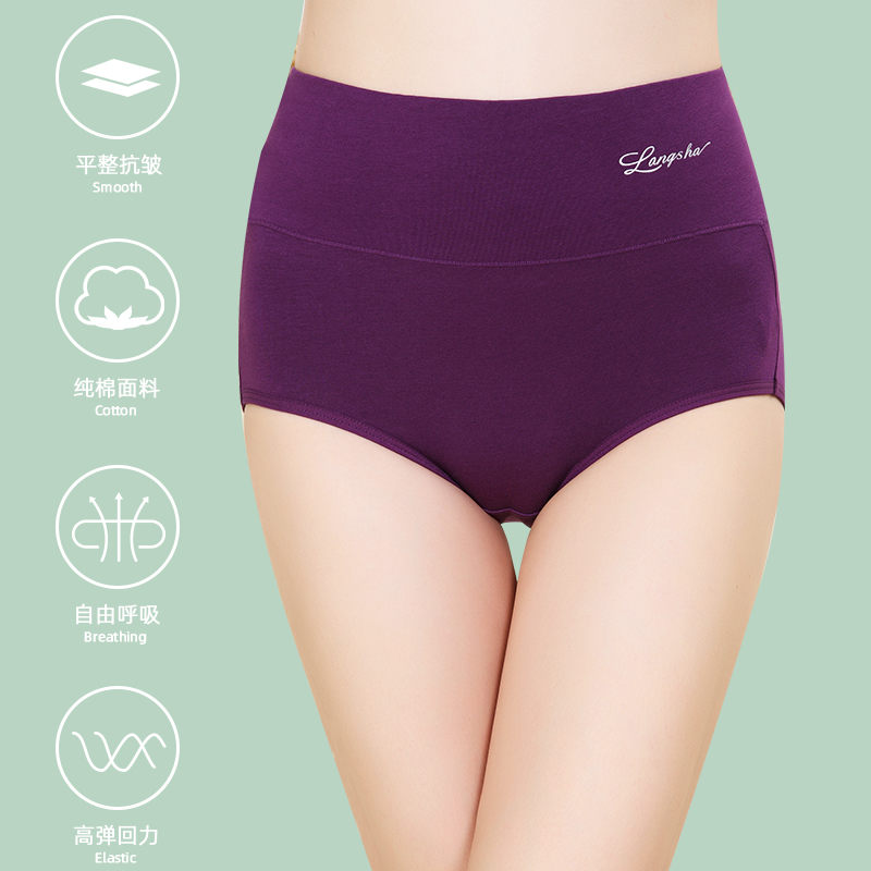 4条装 纯棉裆高腰女士内裤女士棉质面料无痕收腹包臀大码三角裤头