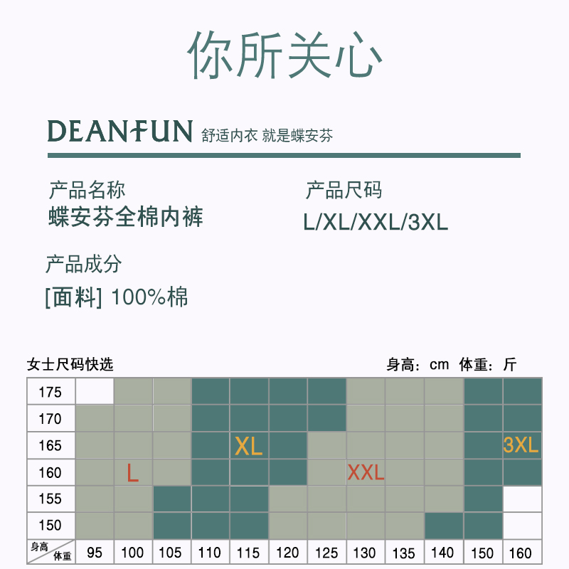 天蝶安芬内裤女士100%纯棉全棉裆抗菌高腰收腹包臀大码女生三角短裤