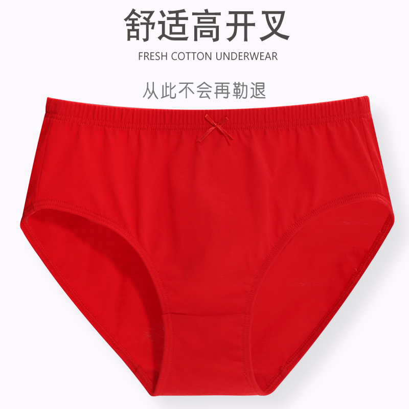 天猫蝶安芬红色纯棉女士内裤本命年100%全棉高腰透气三角短裤薄款大码