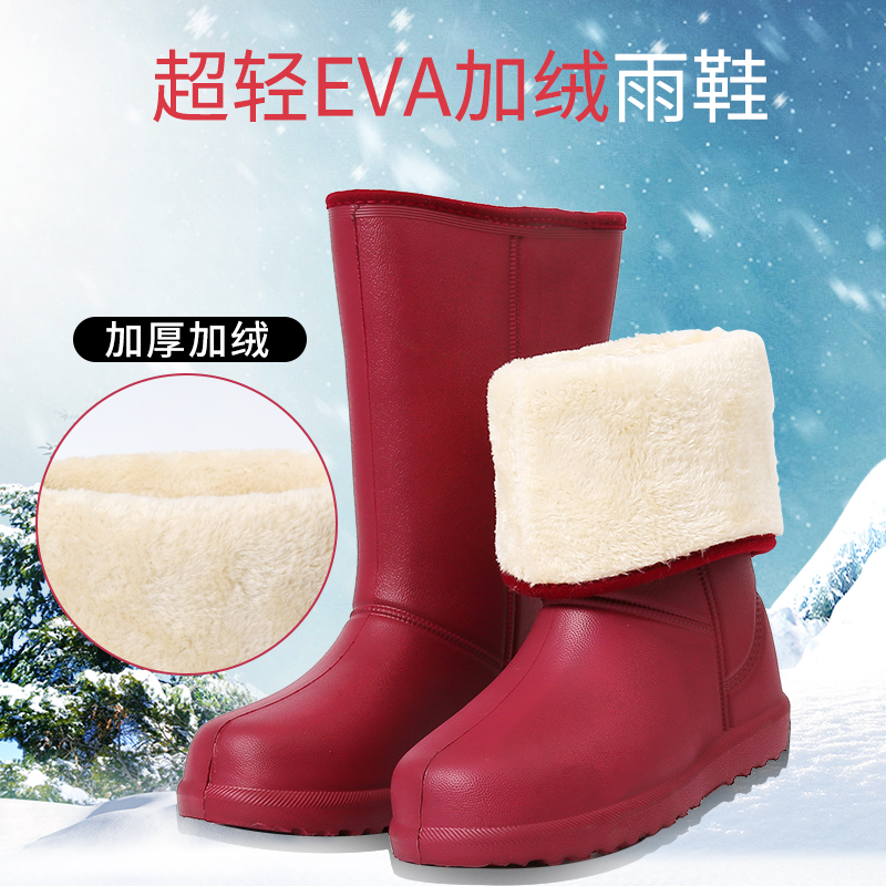 淘宝新品冬时尚高筒雨鞋女甜美轻便成人水鞋泡沫加绒保暖防滑雨靴水靴