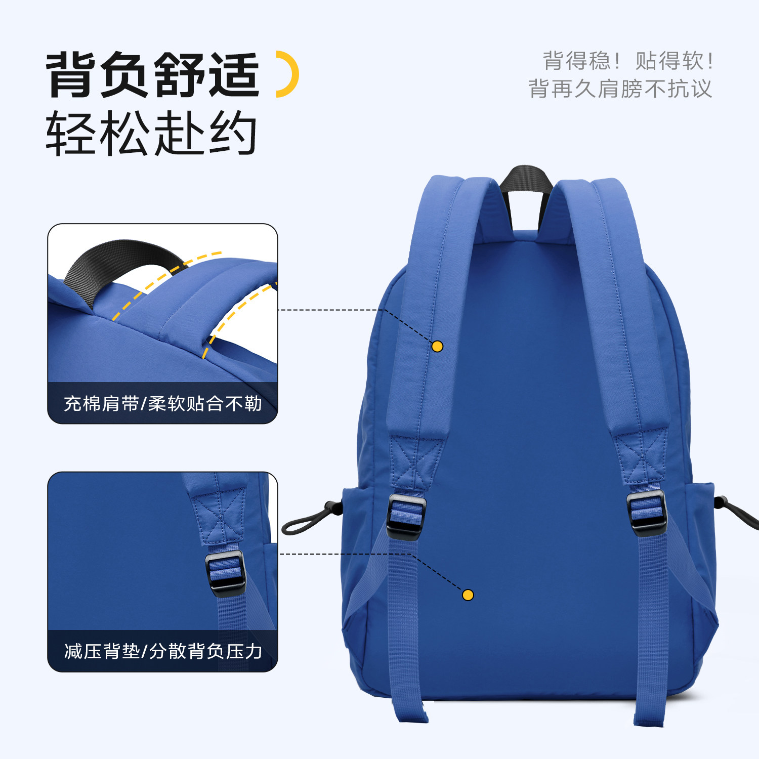 Lee户外轻便双肩包,专为都市通勤、学生日常及短途旅行设计,男女通用。采用轻量化耐磨面料,背负轻盈却坚固耐用,大容量主仓可容纳15.6英寸笔记本电脑,搭配多层分隔收纳袋,轻松整理书本、文具、衣物等物品。人体工学肩带与透气背板设计,有效缓解肩部压力,长时间背负更舒适。侧边弹性网袋方便存放水杯或雨伞,前置拉链袋可快速取放小物件。简约时尚外观,适配多种场景,无论是上学、上班还是出差旅行,都能轻松应对,是追求实用与颜值兼备的理想背包选择。