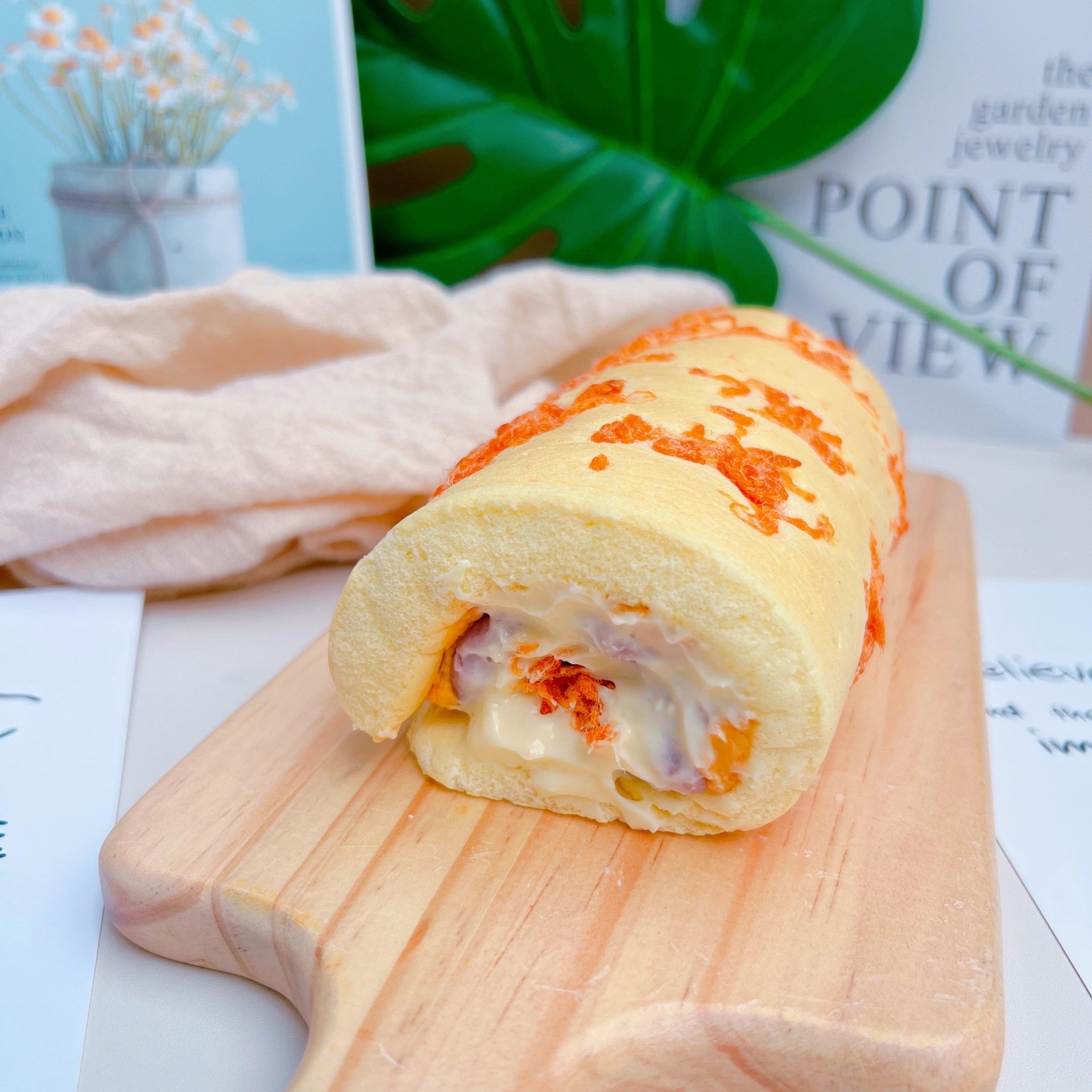 淘宝婷子低卡美食铺 咸蛋黄芋泥肉松魔芋蛋糕卷 0卡代糖 无面粉无加油