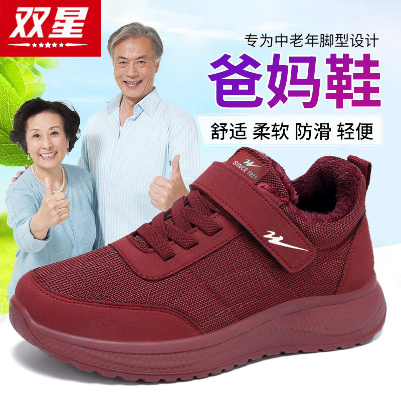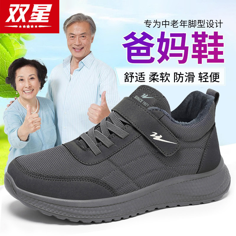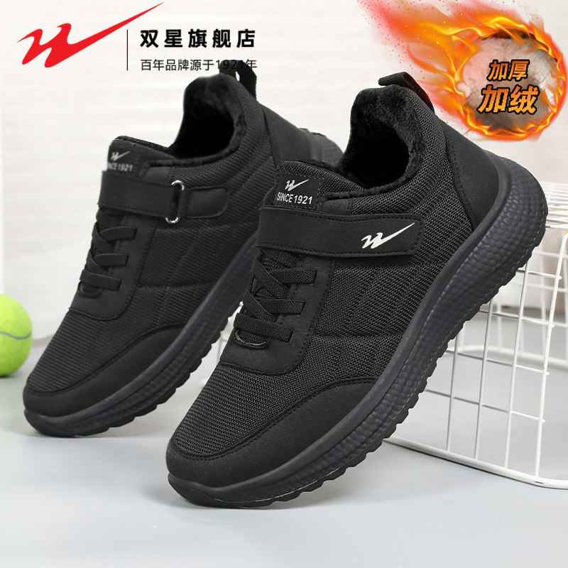 天猫双星男鞋冬季加绒加厚保暖中老年老人棉鞋运动防滑软底健步爸爸鞋