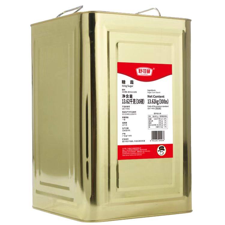舒可曼金标糖粉糖霜(13.62kg)是一款专为烘焙与翻糖工艺设计的高品质原料,适用于制作蛋糕装饰、糖霜饼干及翻糖造型。产品分为蓝标和红标两种规格,蓝标细腻柔滑,适合精细裱花与糖霜涂抹;红标颗粒略粗,更易塑形,广泛用于翻糖制作。采用优质蔗糖精制而成,溶解快、稳定性强,成品色泽洁白、口感清甜,不易返砂。舒可曼品牌品质可靠,深受烘焙师与甜品店信赖。支持多仓发货,物流高效便捷,满足大批量采购需求,是专业烘焙坊、甜品店及大型活动的理想选择。