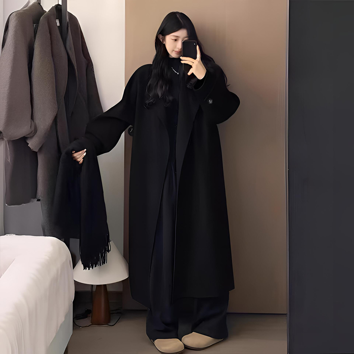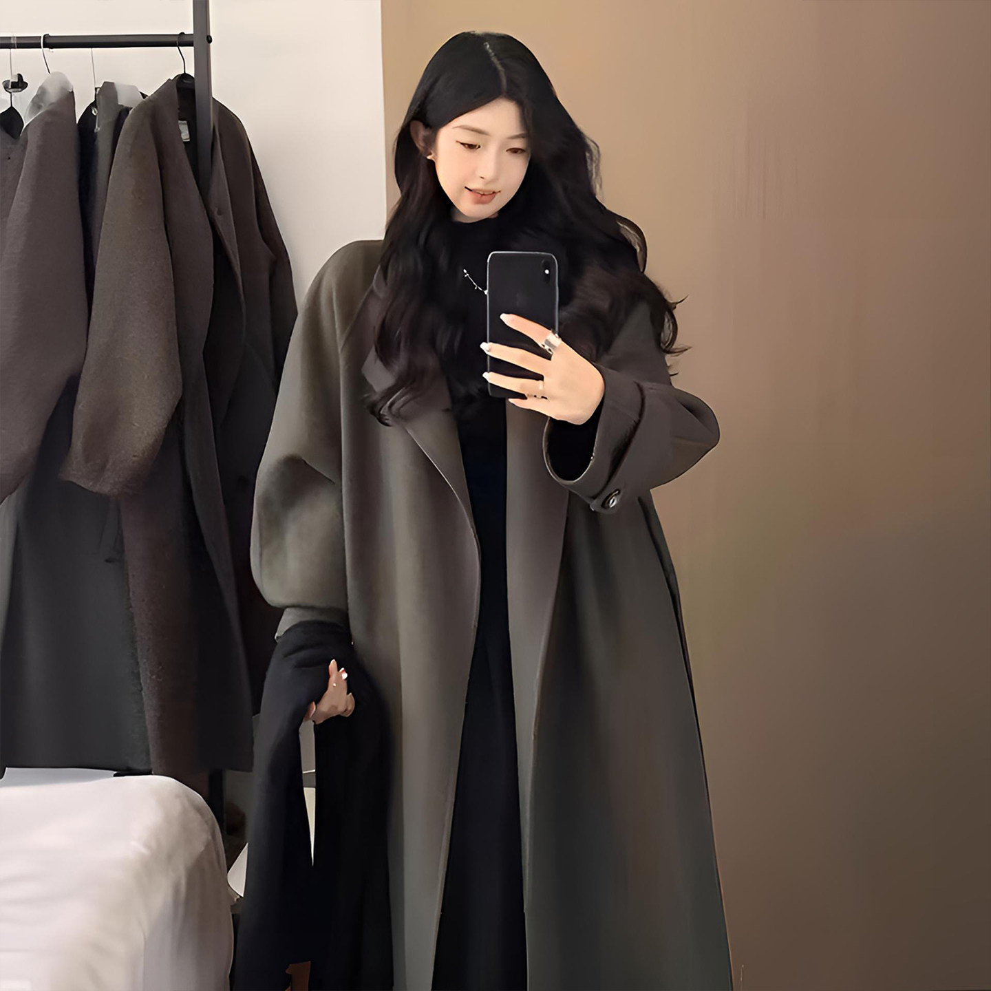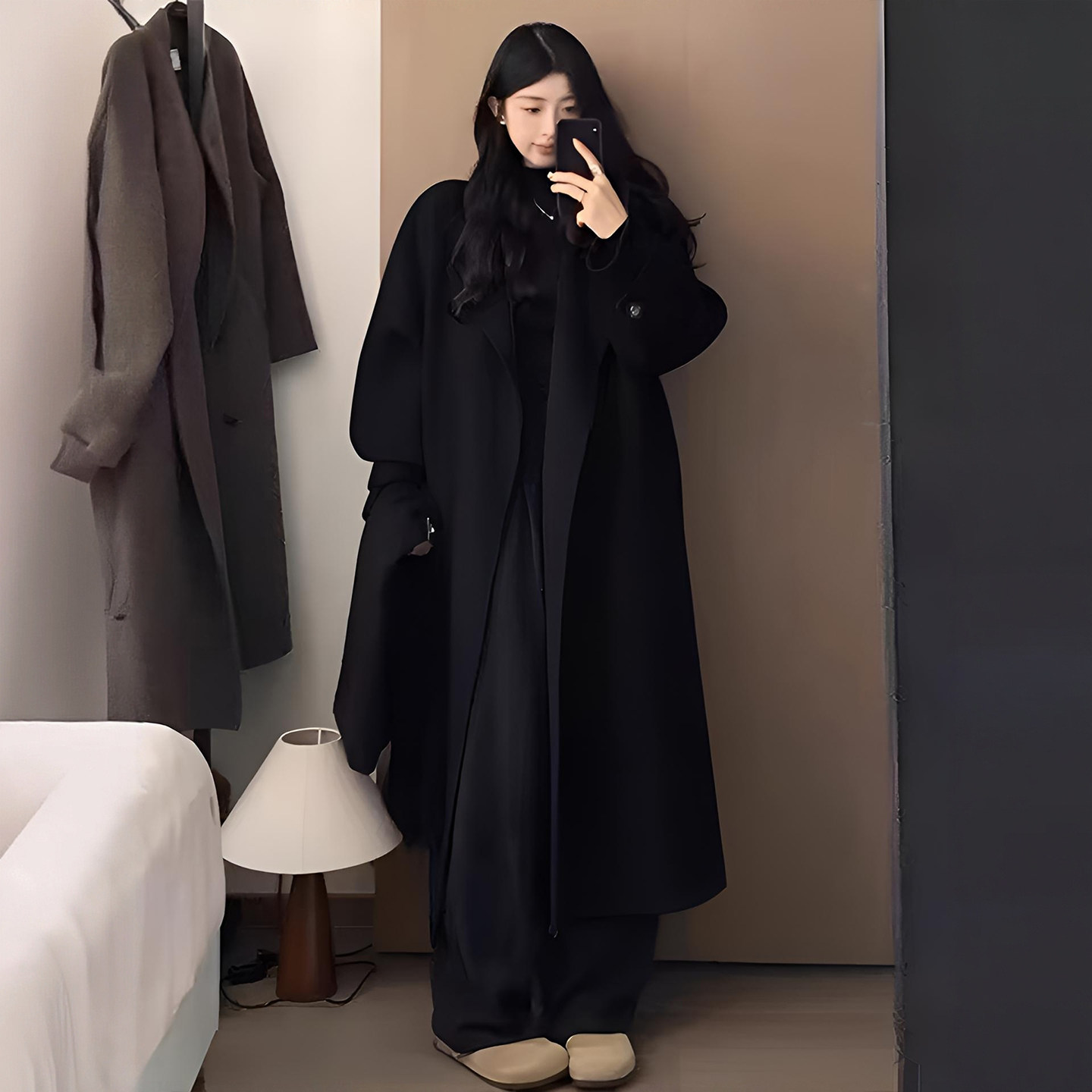 这款大码女装黑色长款毛呢外套,专为胖MM设计,融合赫本风经典美学与ins时尚气质。采用高级质感毛呢面料,挺括有型,垂坠感佳,轻松塑造优雅廓形。利落剪裁配合微收腰设计,视觉拉长身形,极致显瘦。经典黑色调百搭耐看,彰显低调奢华的高级感。翻领、单排扣等细节精致考究,兼顾保暖与风度。无论是通勤、约会或日常出街,都能展现自信从容的女性魅力。专为大码身材优化版型,包容性强,穿着舒适不束缚,是秋冬不可或缺的显瘦气质大衣,让每位女性都能穿出属于自己的高级范儿。