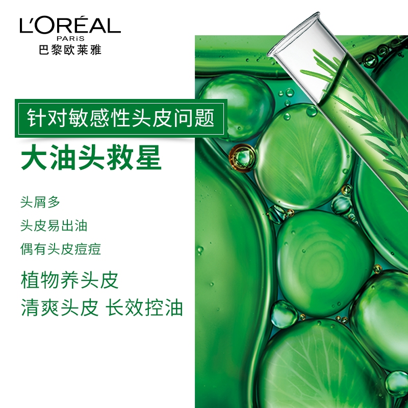 天猫欧莱雅绿瓶茶树植萃去屑控油清爽头皮舒缓清洁洗发水女洗发露男
