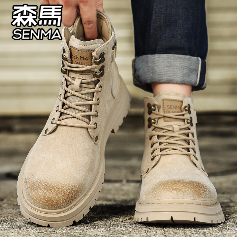 天猫森马马丁靴男鞋冬季高帮美式复古经典大黄靴厚底增高男士工装潮鞋