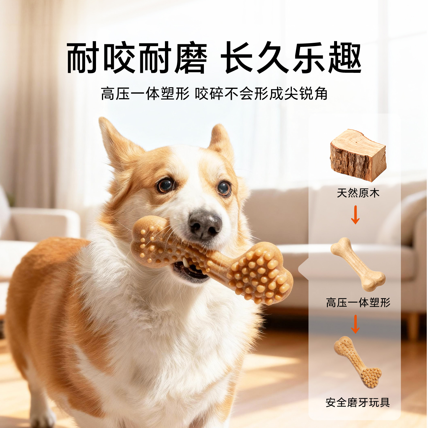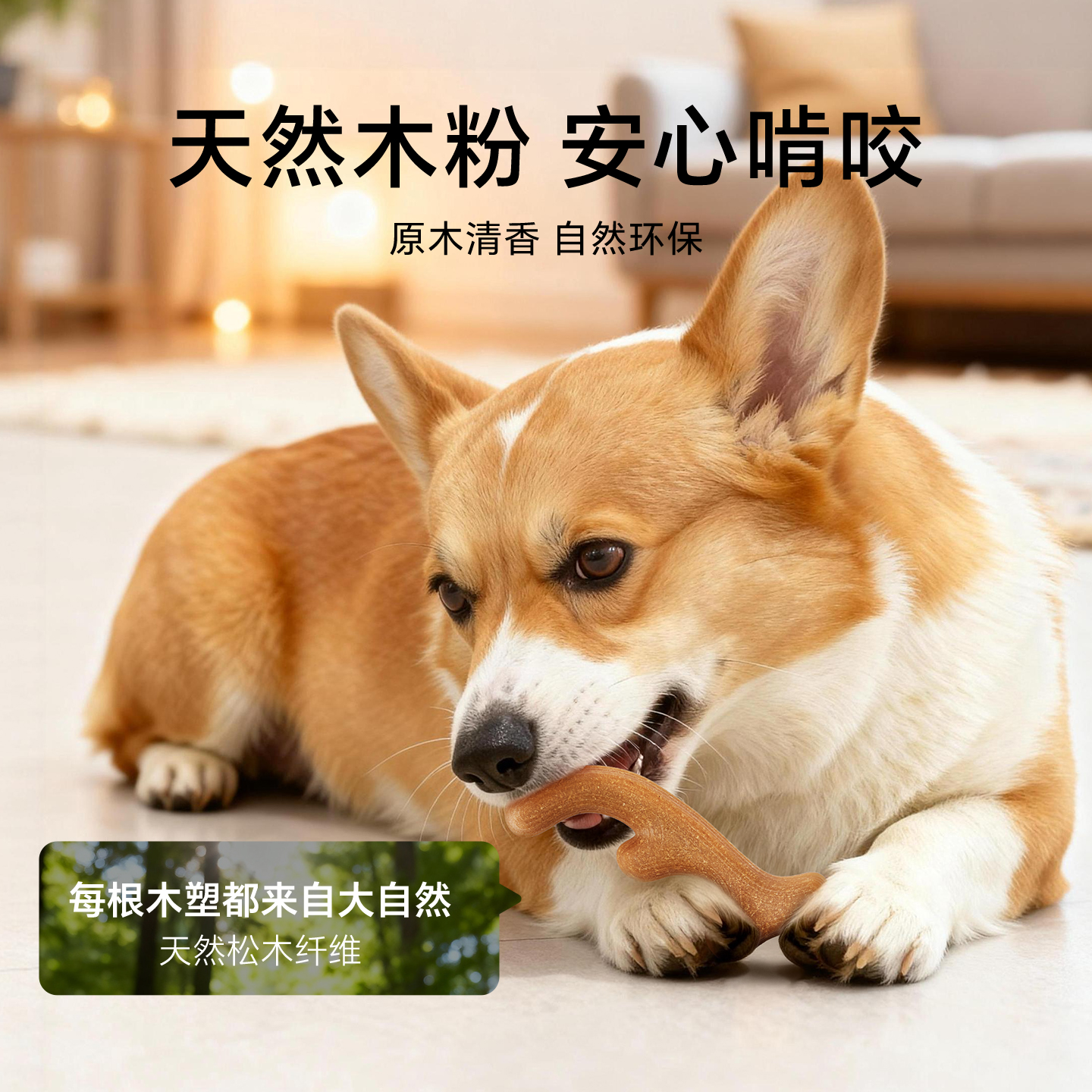 天猫FOFOS两只福狸狗狗玩具磨牙棒鹿角幼犬耐咬宠物自嗨啃咬天然木粉