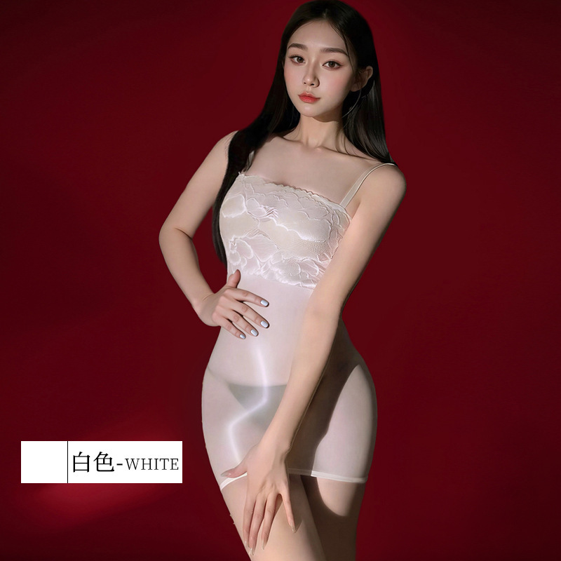 无缝5D超薄油光亮丝袜抹胸紧身半全身包臀裙性感透明马油情调睡裙