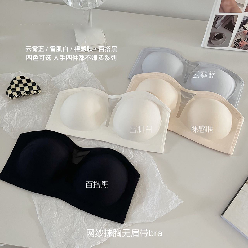 淘宝无肩带内衣夏季薄透气抹胸无痕Bra网纱防滑无钢圈文胸内搭可拆卸A