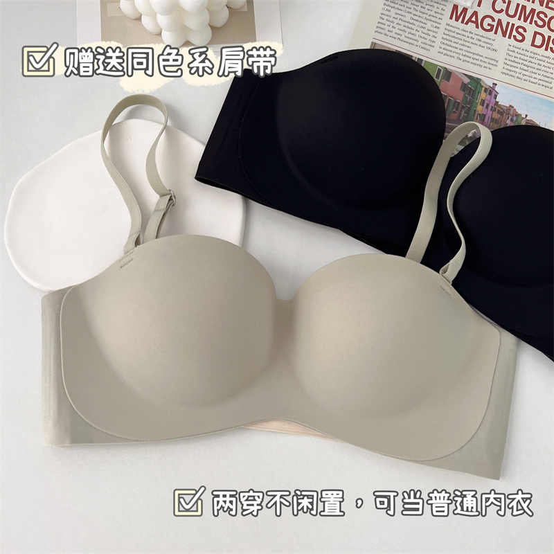淘无肩带内衣女薄款小胸聚拢抹胸防滑隐形文胸婚纱夏季一字肩胸罩