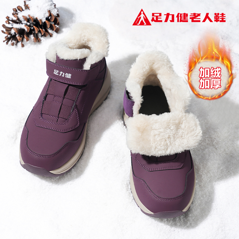 足力健老人鞋官方旗舰店正品妈妈冬季加绒保暖棉鞋软底雪地靴女款
