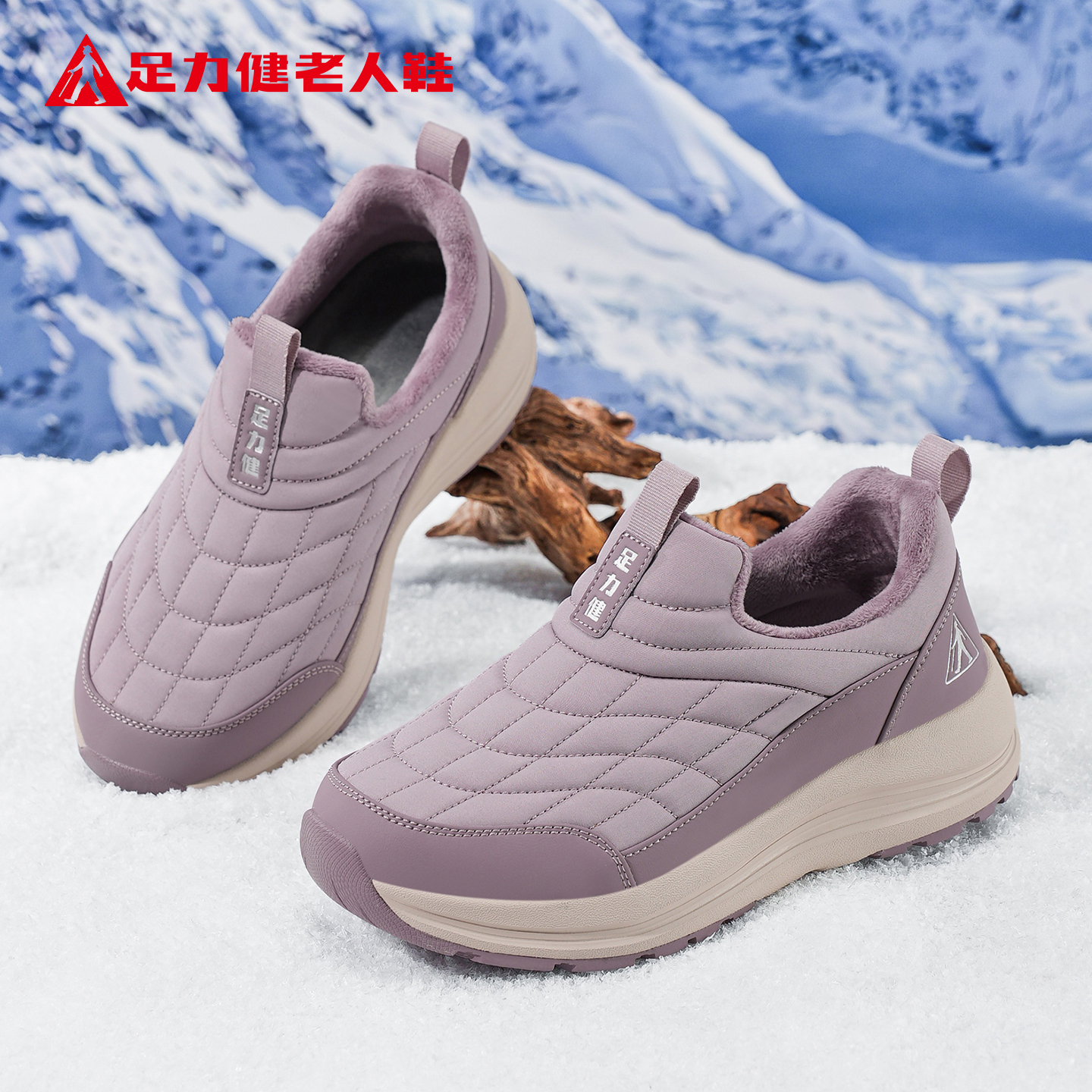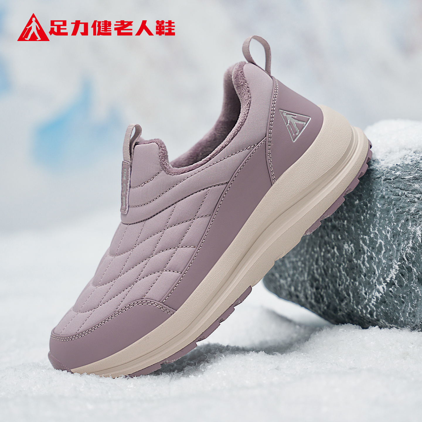 足力健老人鞋官方旗舰店正品女鞋秋冬季加绒棉鞋中老年舒适妈妈鞋