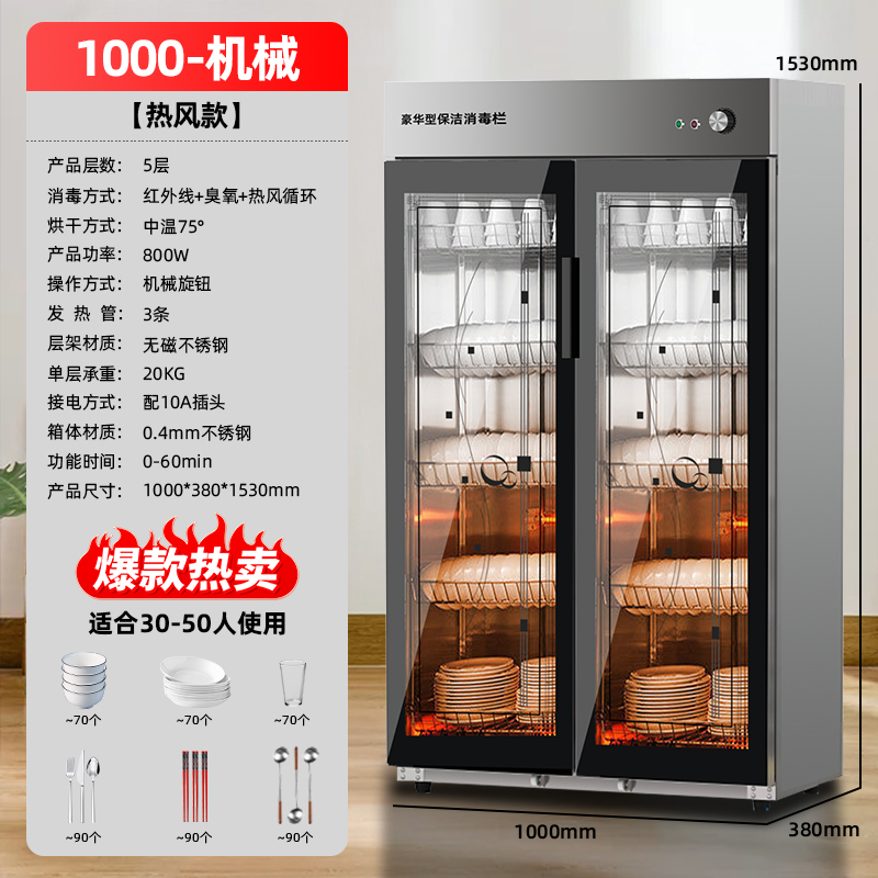 天商用消毒柜立式热风循环大容量饭店酒店餐具不锈钢消毒碗柜双门
