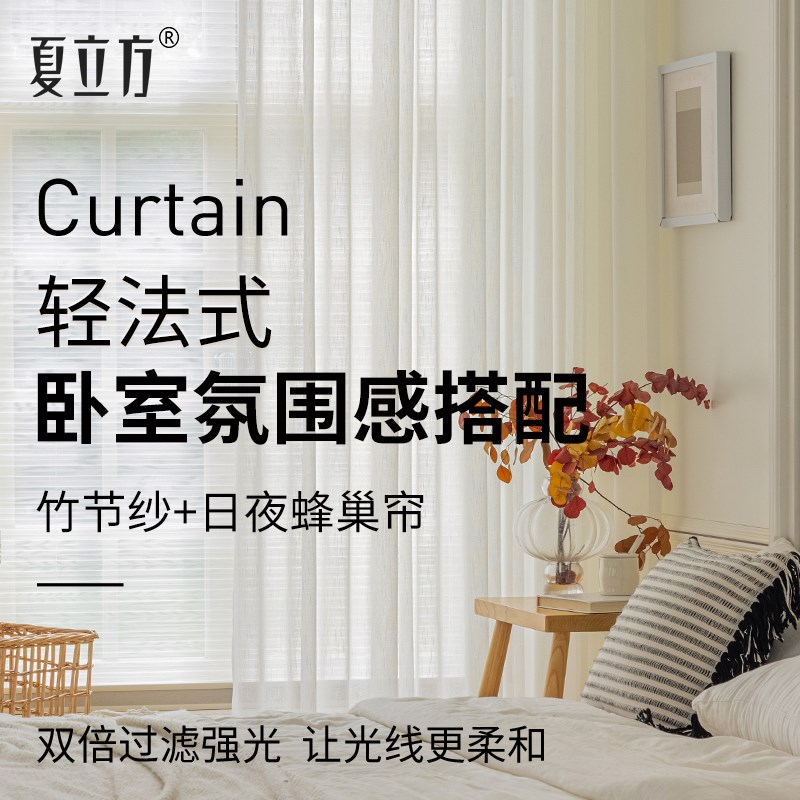 淘宝夏立方定制窗帘卧室客厅遮阳帘网红透光不透人竹节纱现代简约布帘