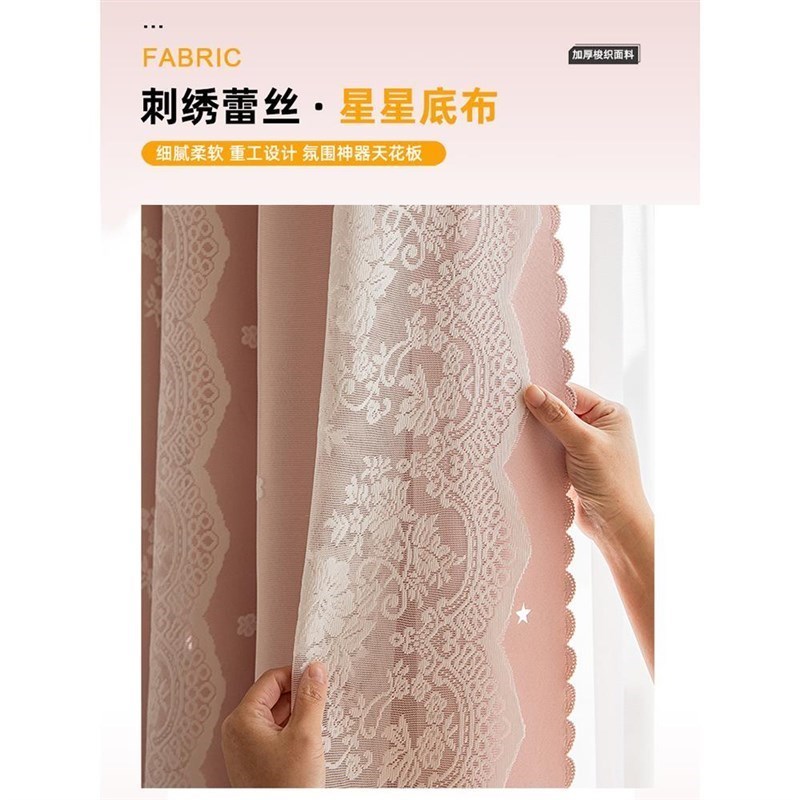 淘新款网红魔术贴梦幻窗帘免打孔安装自粘纱帘透光不透人门帘蕾丝波