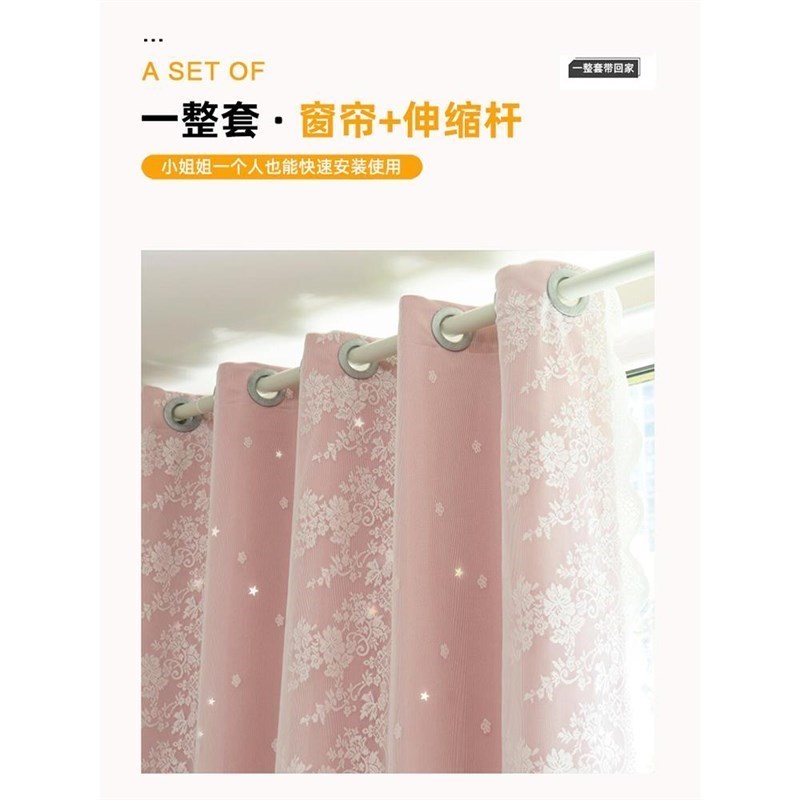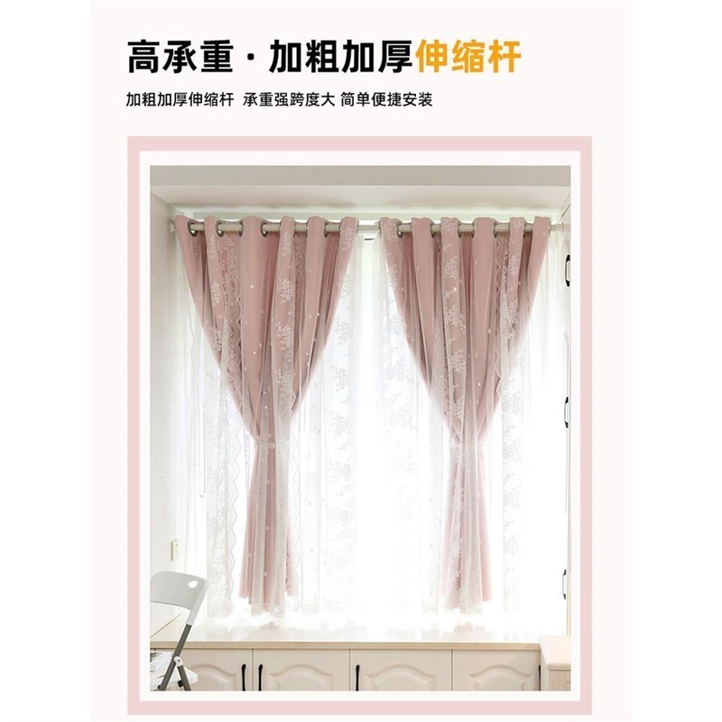 淘带安装纱帘免伸缩窗帘杆送打孔梦幻一整套飘窗窗帘双层帘卧室遮光