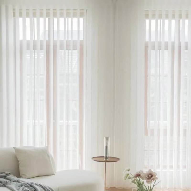 淘窗帘纱帘透光不透人阳台卧w室飘窗免打孔防勾丝客厅隔断梦幻白纱