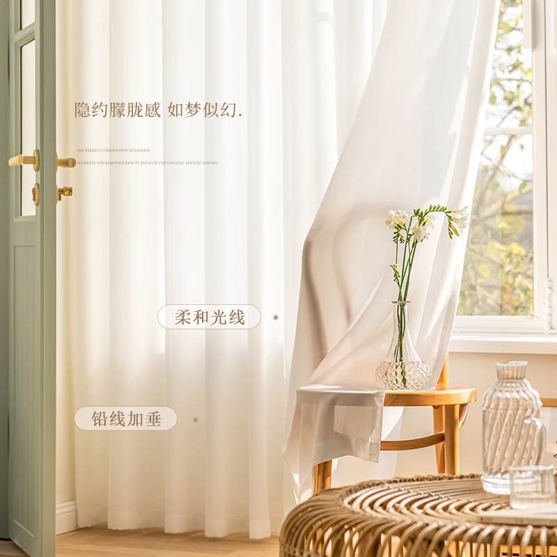 淘幻影纱白纱纱窗帘纱帘透光不透人窗纱飘窗客厅阳台半遮光梦幻防刮