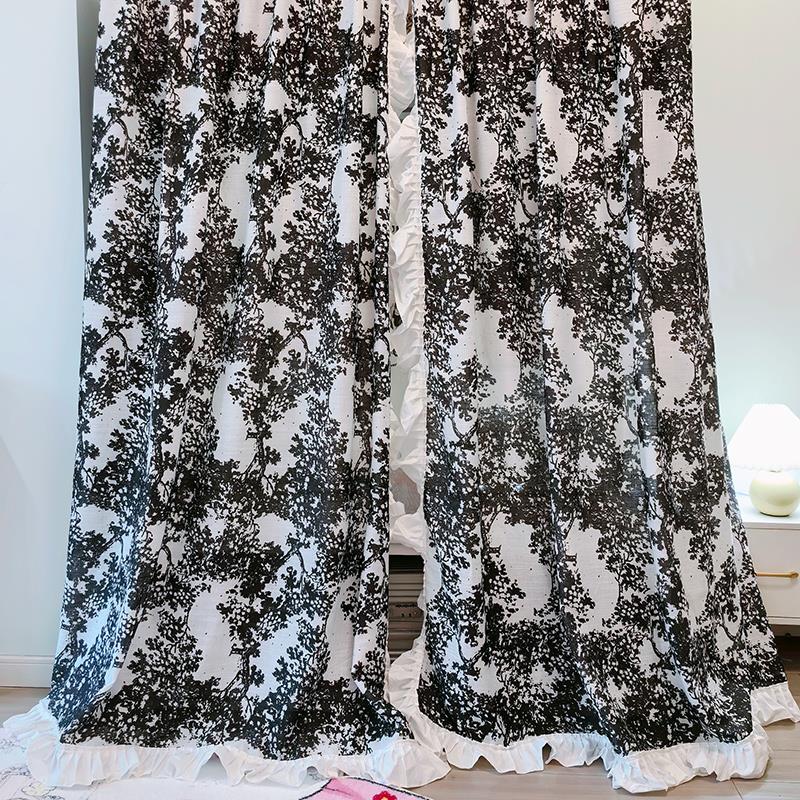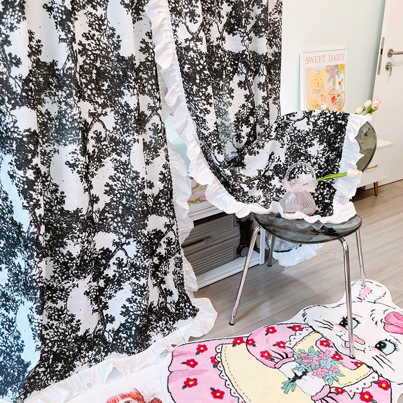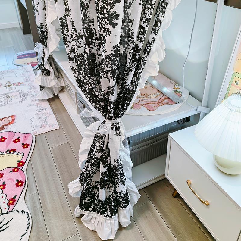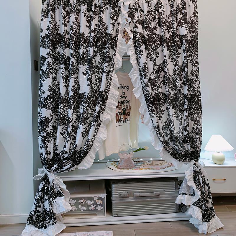 图书馆书架衣g帽间遮丑隔断帘大厅白纱窗帘点缀樱桃装饰花朵窗帘