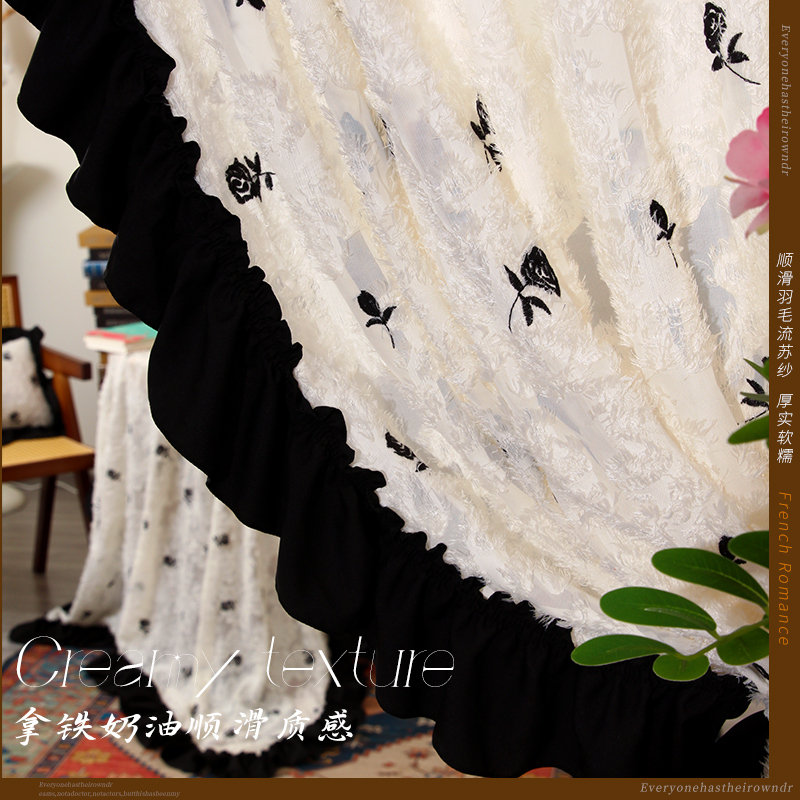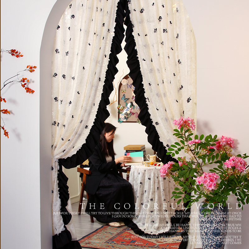 天猫法式门帘2025新款冬风纱帘氛围感隔断帘免打孔门帘飘窗帘不透人